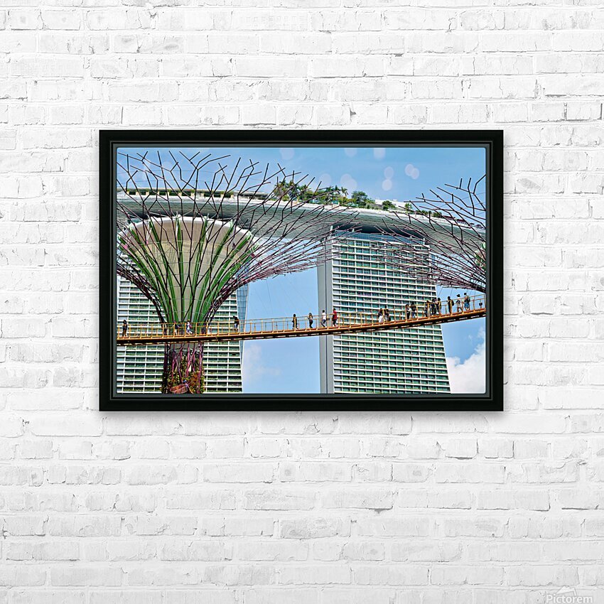 People walk on bridge connecting to Supertree Grove in Singapore Picture Frame Printing