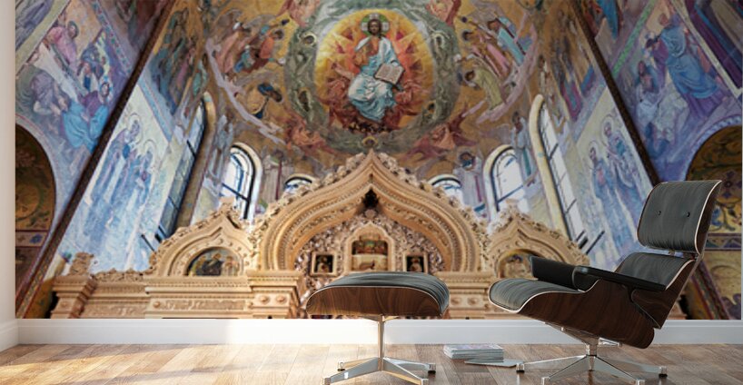 Visitors admire the stunning interior of the Church of the Savior on the Spilled Blood in St. Petersburg Russia.