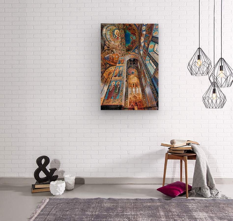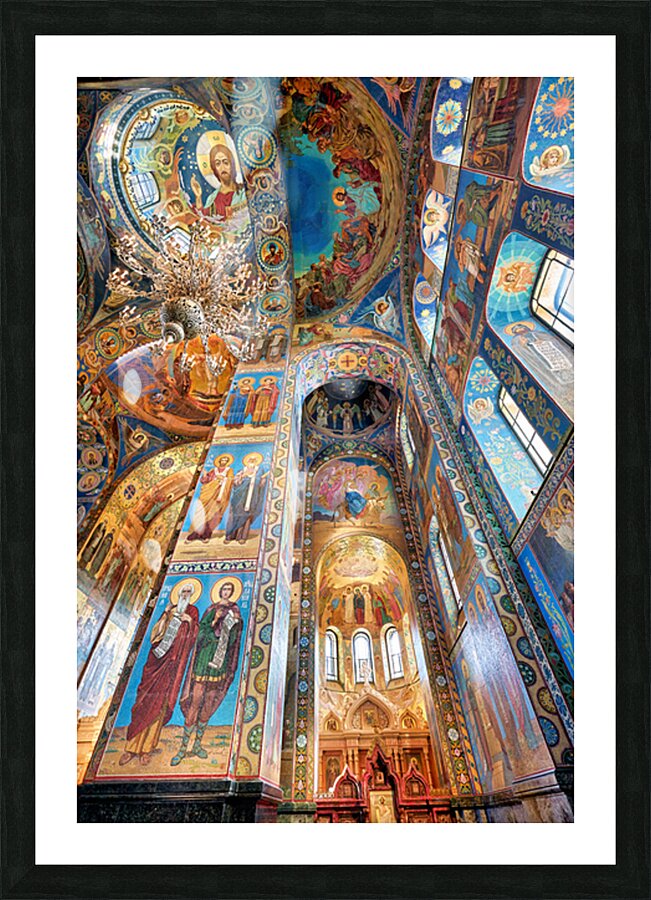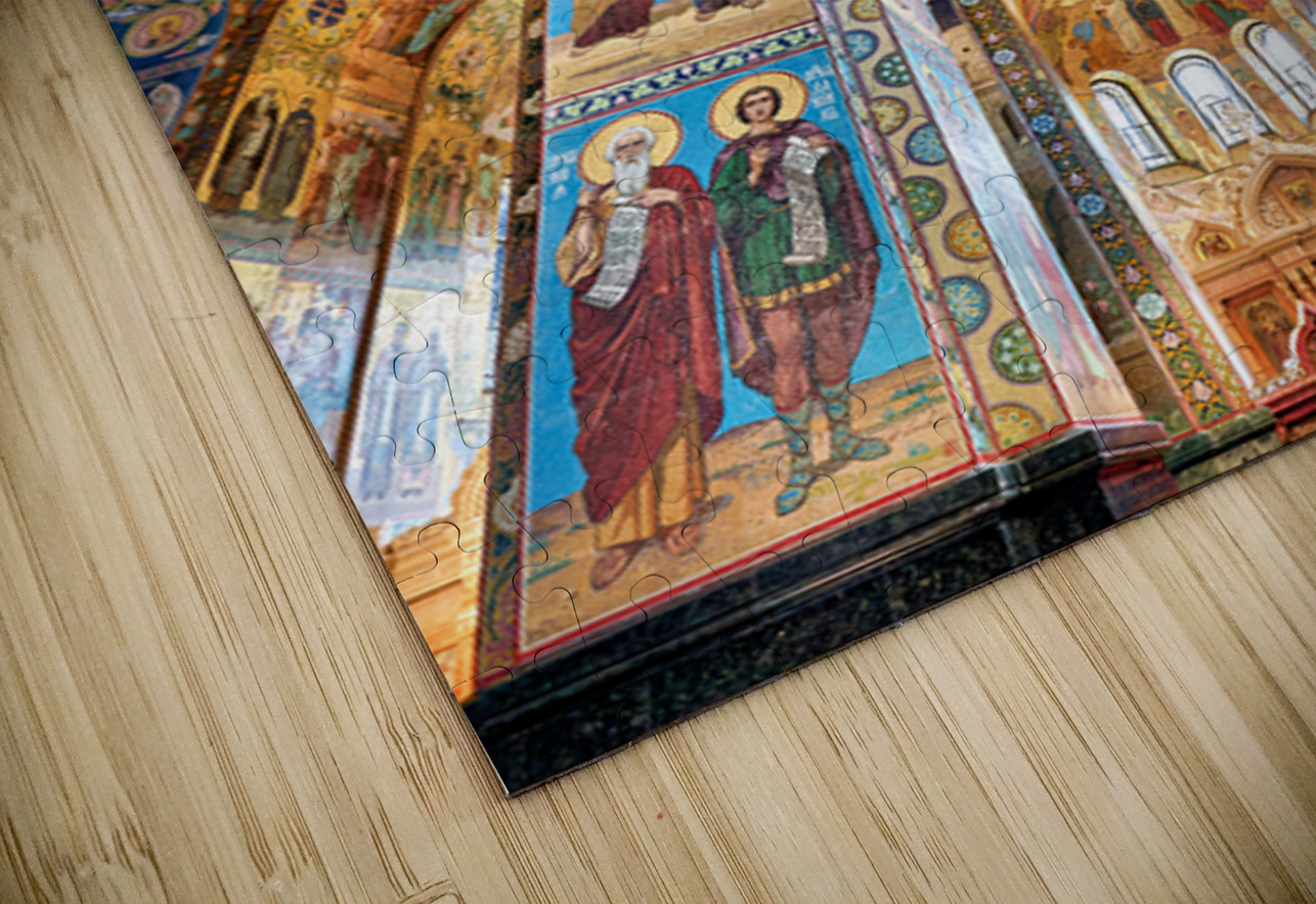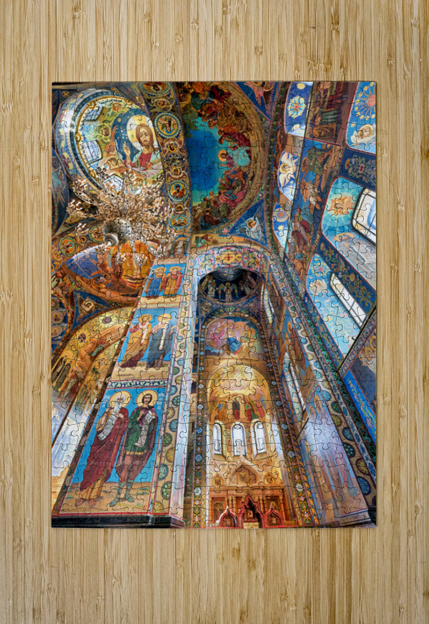 Visitors explore the rich interior of the Church of the Savior on the Spilled Blood in St. Petersburg. Colorful mosaics cover the walls and ceiling.