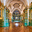 Visitors walk through the grand interior of St. Nicholas Naval Cathedral in St. Petersburg showcasing intricate designs and decorations.