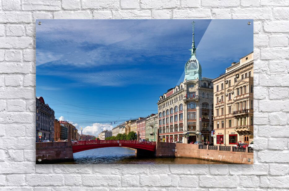 Get this artwork "Historic buildings line the Moyka River in St. Petersburg" in a framed print.