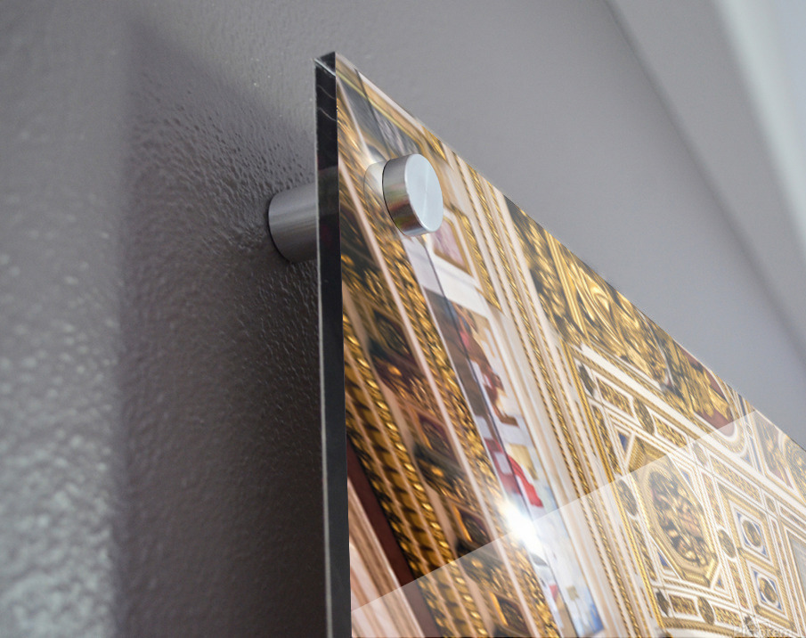 Printed to the edge - Ready to hang - provided with 4 premium polished aluminum stand off ( wall screws and mounting hardware provided )