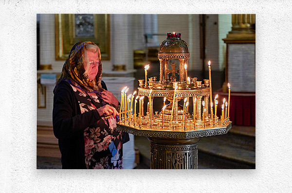 ABOUT THIS ARTWORK: WOMAN LIGHTS CANDLES AT ALEXANDER NEVSKY LAVRA