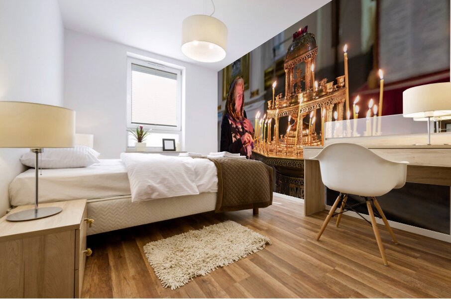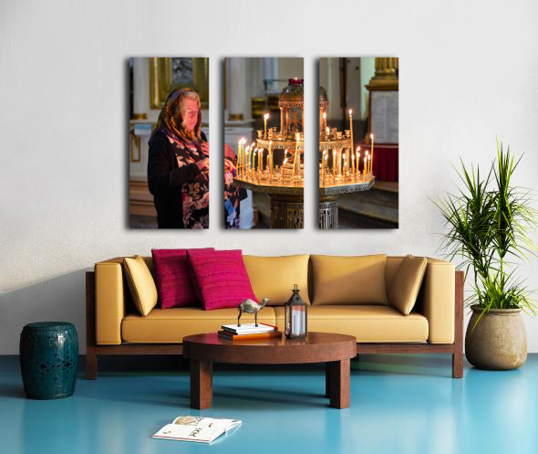 Get this artwork "Woman lights candles at Alexander Nevsky Lavra" in a framed print.
