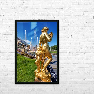 Golden statues at Peterhof Palace in Saint Petersburg Frame print