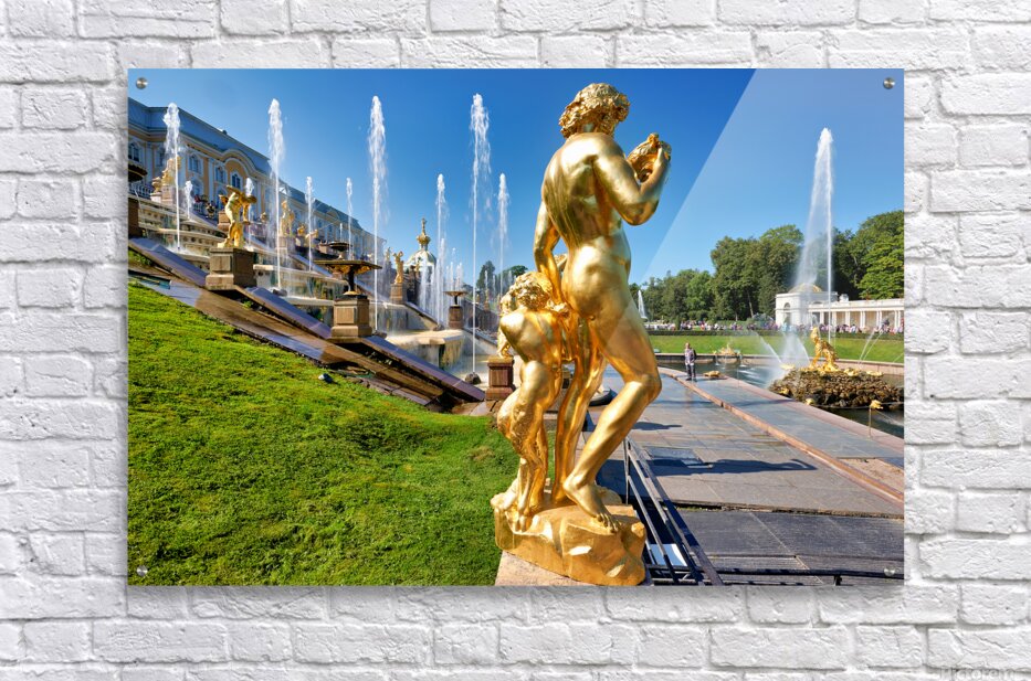 ABOUT THIS ARTWORK: GOLDEN STATUES AT PETERHOF PALACE IN ST. PETERSBURG RUSSIA