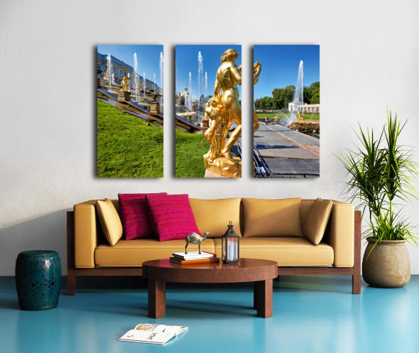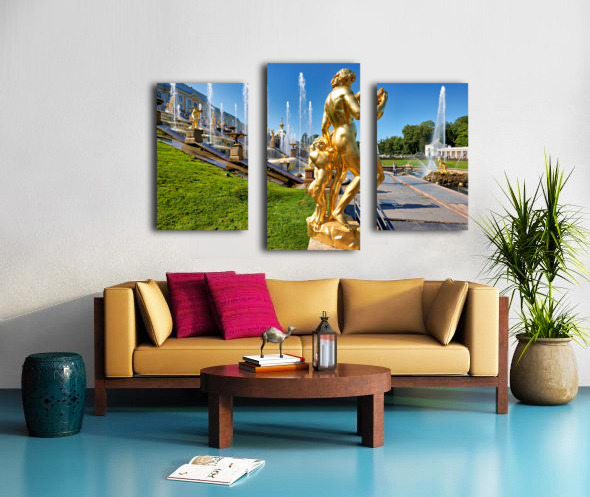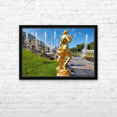 Golden statues at Peterhof Palace in St. Petersburg Russia Frame print