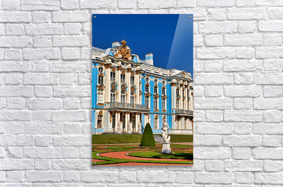 Get this artwork "Catherine Palace in Saint Petersburg with blue facade and garden" in a framed print.