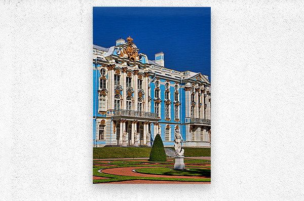 ABOUT THIS ARTWORK: CATHERINE PALACE IN SAINT PETERSBURG WITH BLUE FACADE AND GARDEN