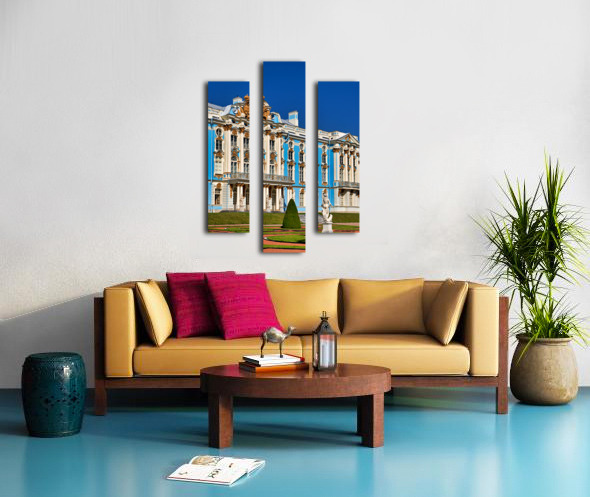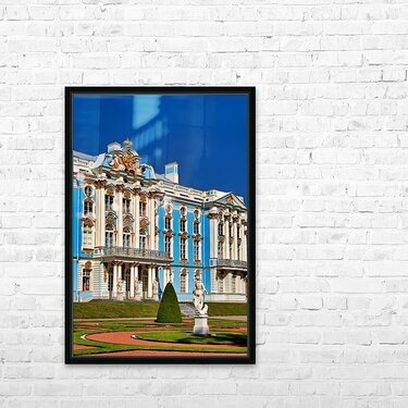 Catherine Palace in Saint Petersburg with blue facade and garden Picture Frame Printing