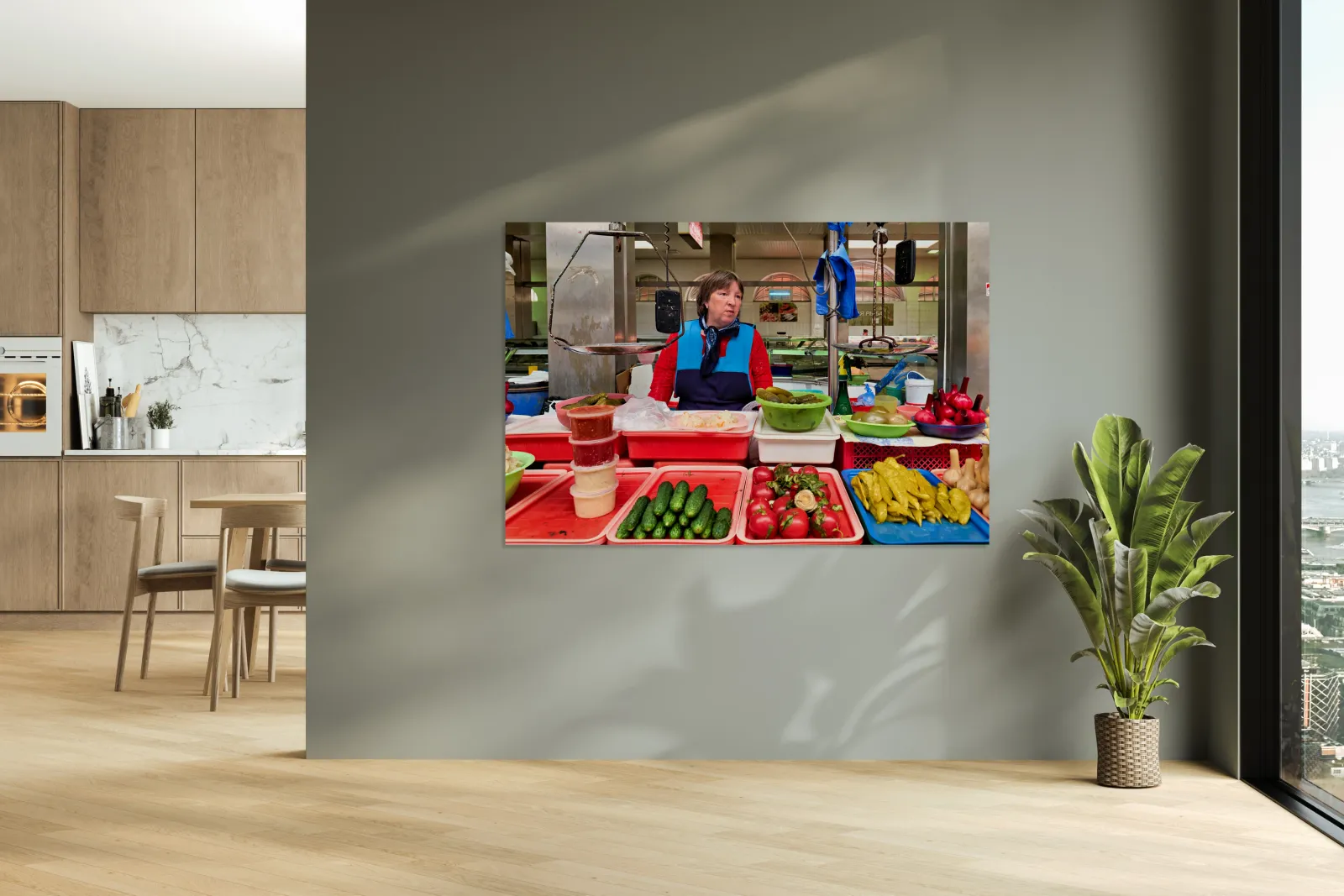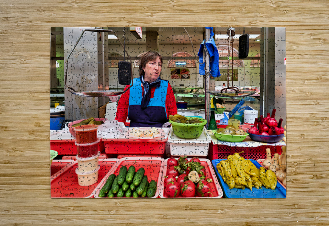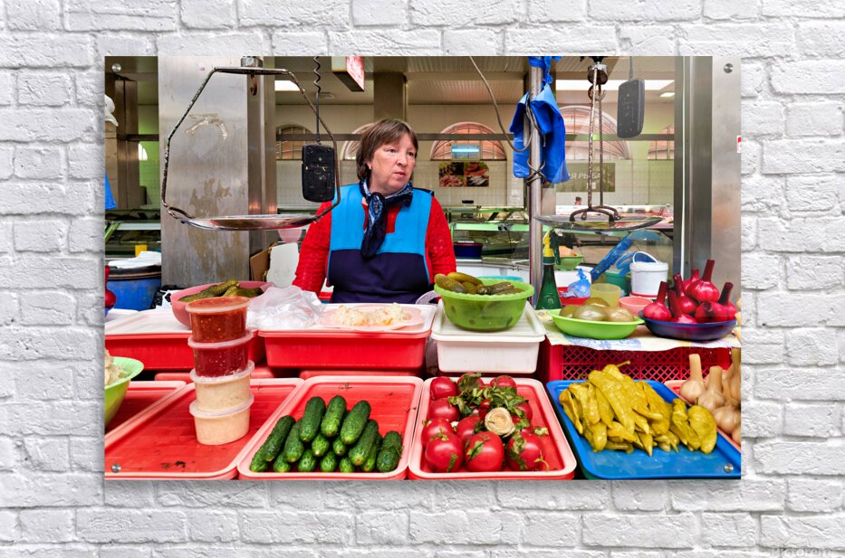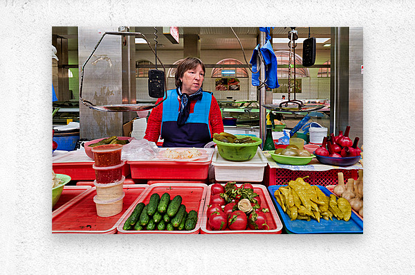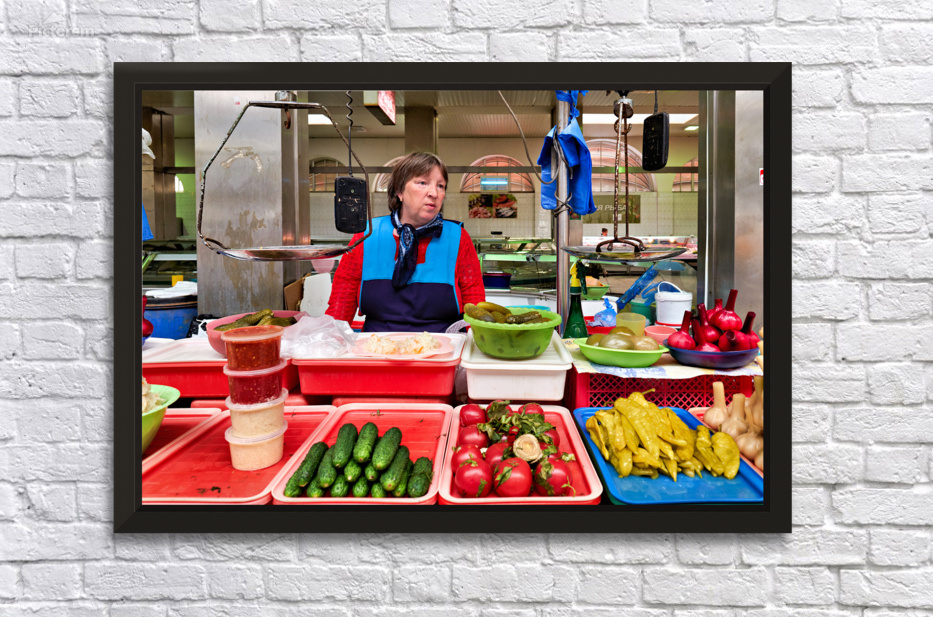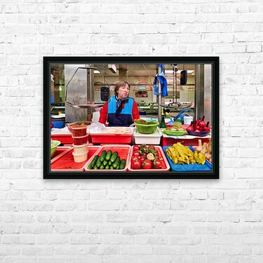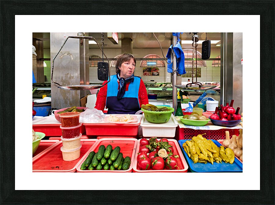 "Vendor sells fresh produce at Kuznechnyy Rynok St. Pete" in a framed print.