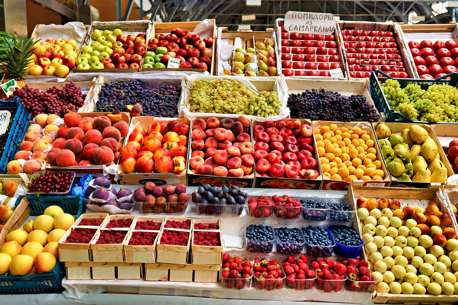 FRUITS DISPLAYED AT KUZNECHNYY RYNOK MARKET IN SAINT PETERSBURG