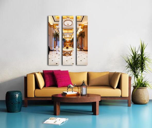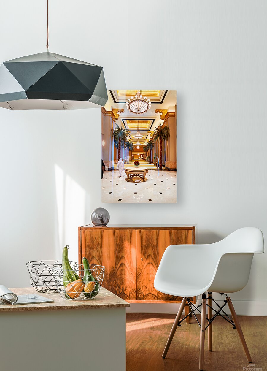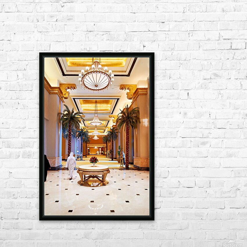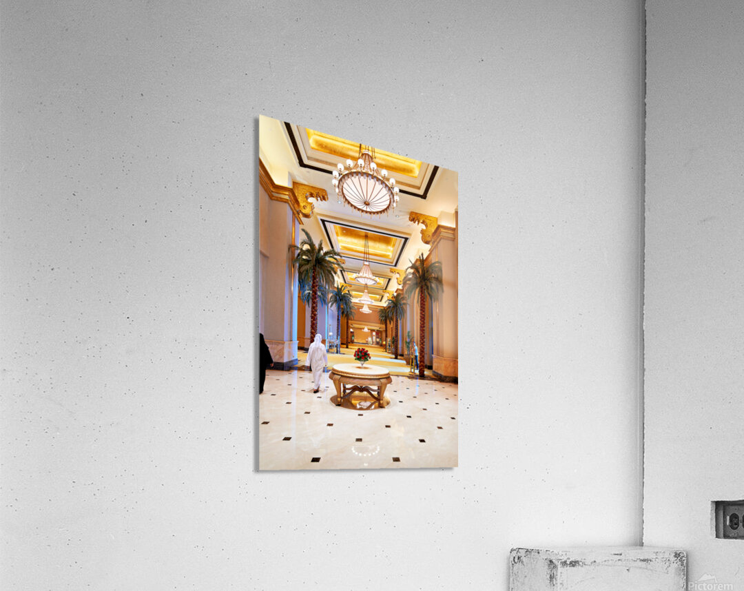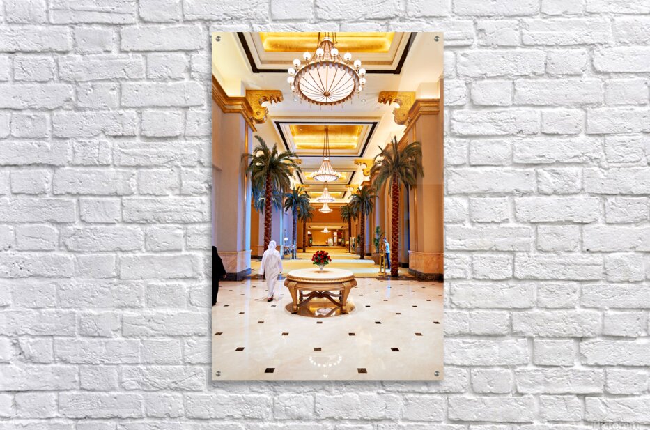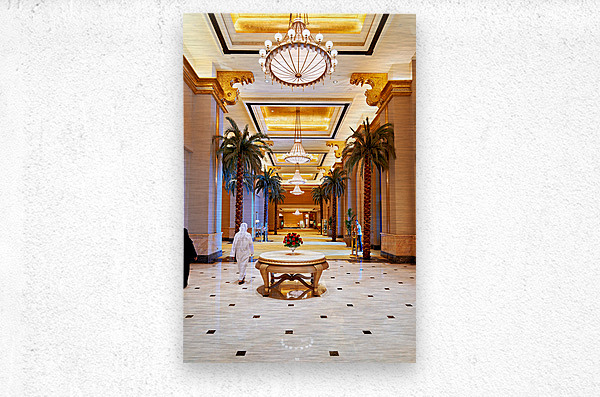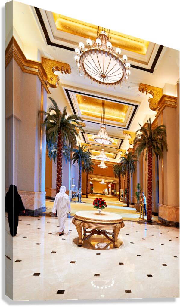 Get this artwork "Visitors stroll through Emirates Palace Hotel lobby" in a framed print.