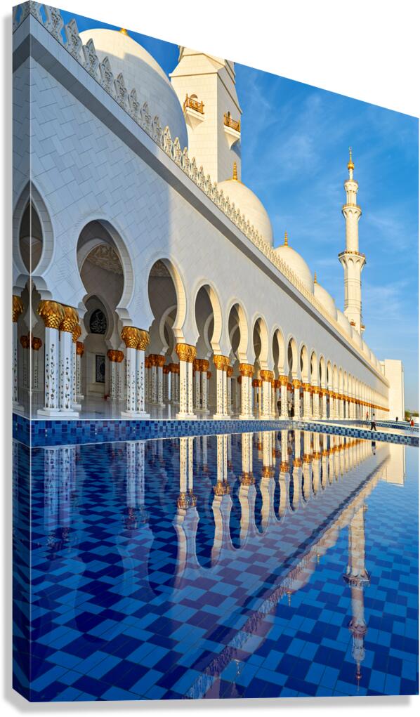 Get this artwork "Visit to Sheikh Zayed Grand Mosque in Abu Dhabi at dawn" in a framed print.