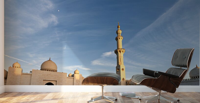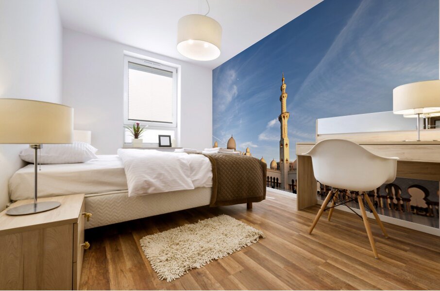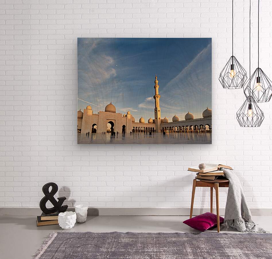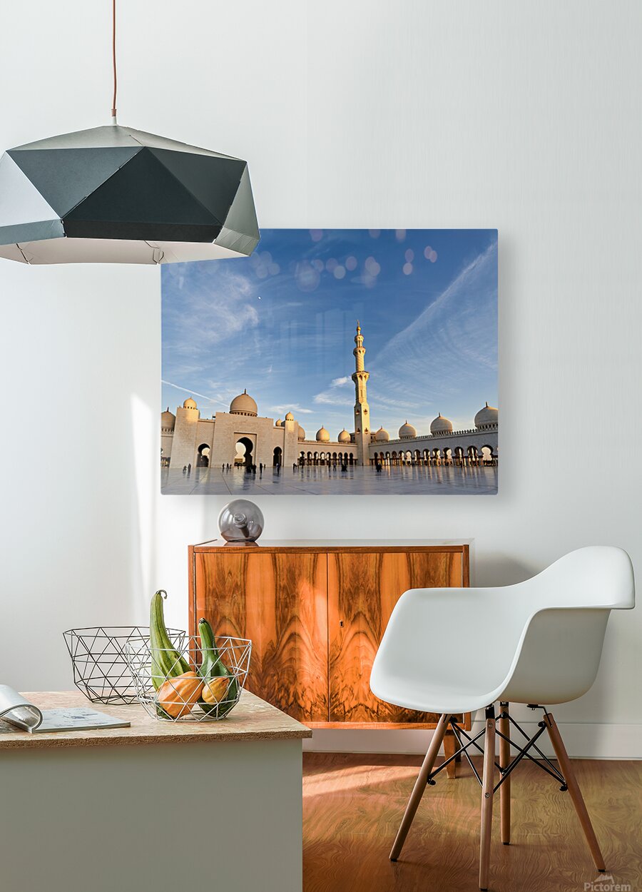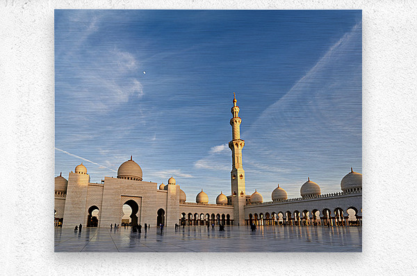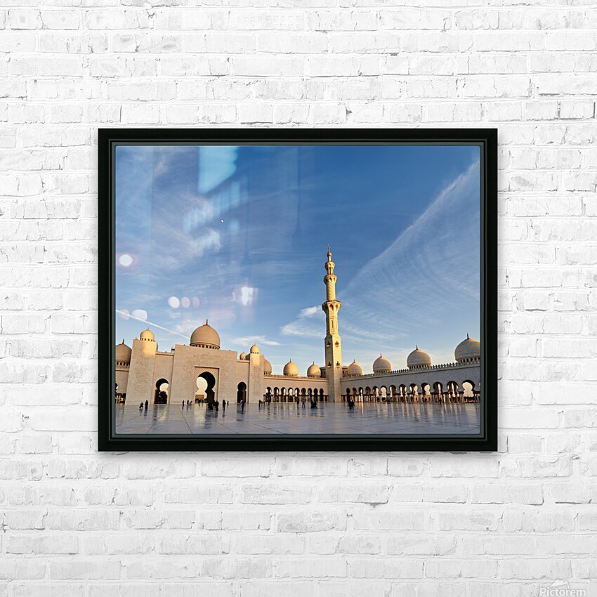 "Visitors explore Sheikh Zayed Grand Mosque in Abu Dhabi" in a framed print.