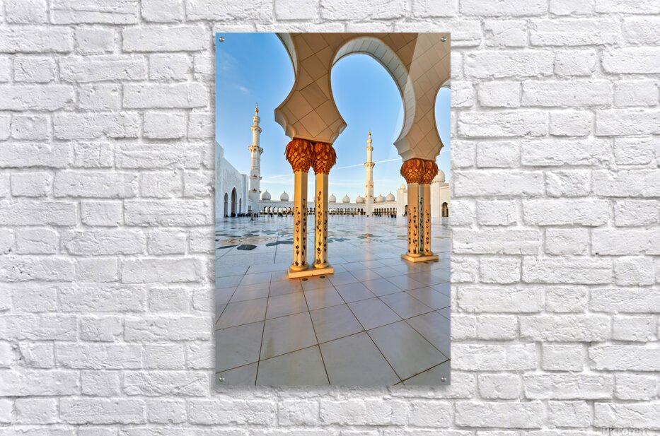 Get this artwork "Visit to Sheikh Zayed Grand Mosque in Abu Dhabi at dawn" in a framed print.