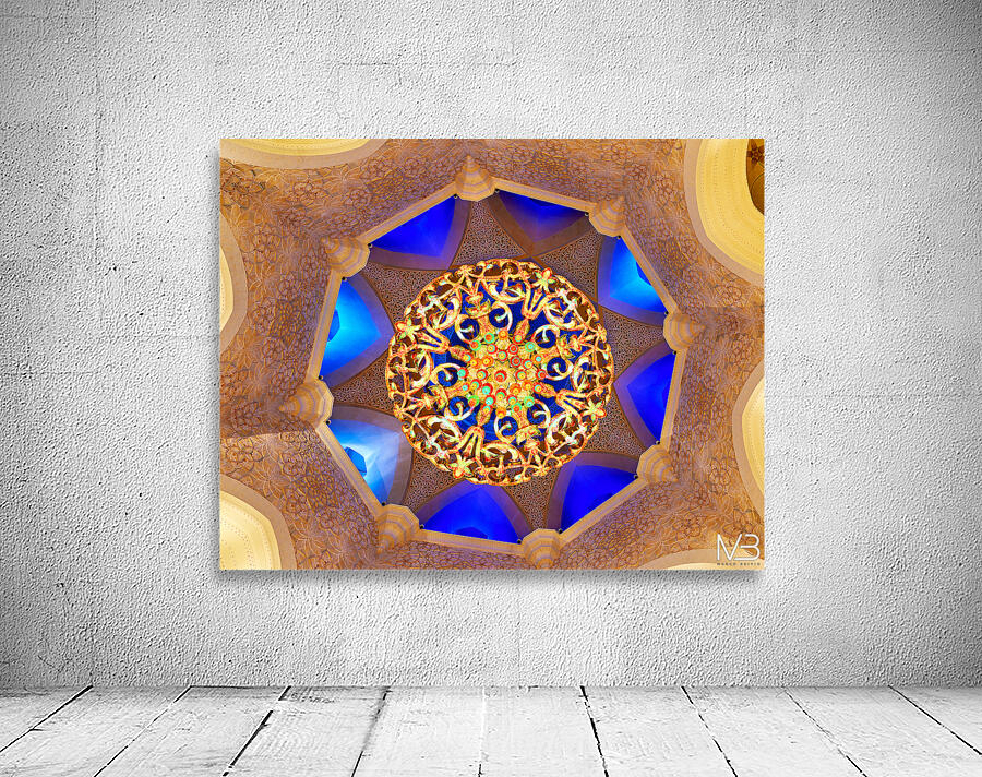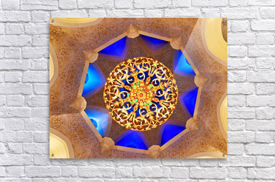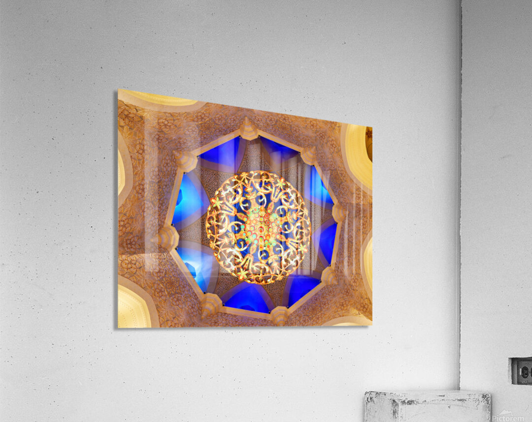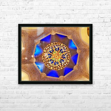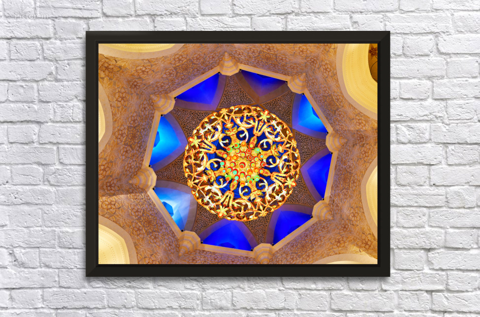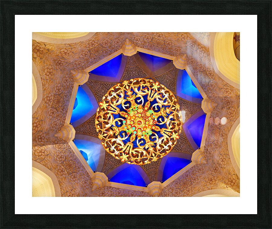 "Intricate ceiling design at Sheikh Zayed Grand Mosque" in a framed print.