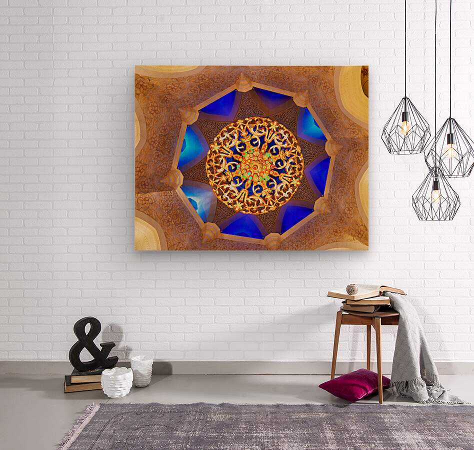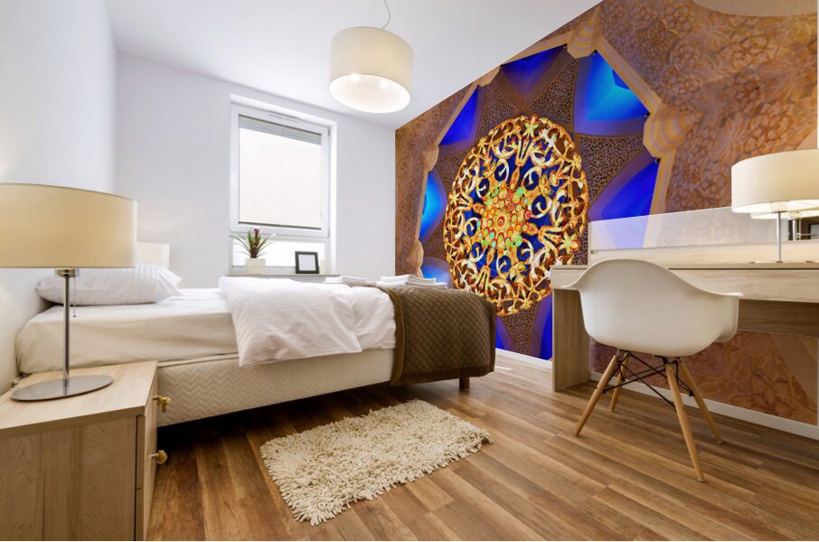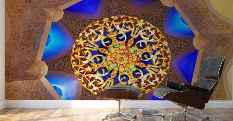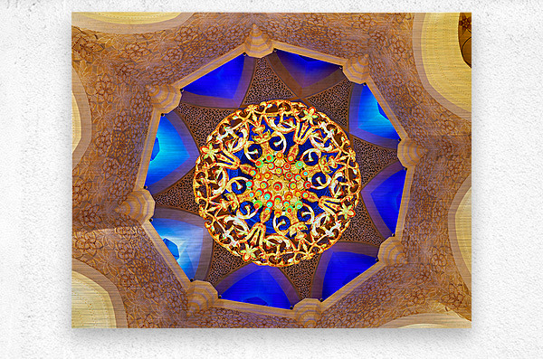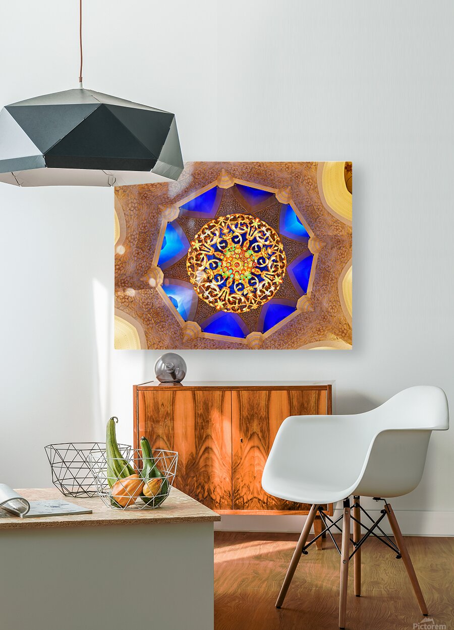 "Intricate ceiling design at Sheikh Zayed Grand Mosque" in a framed print.