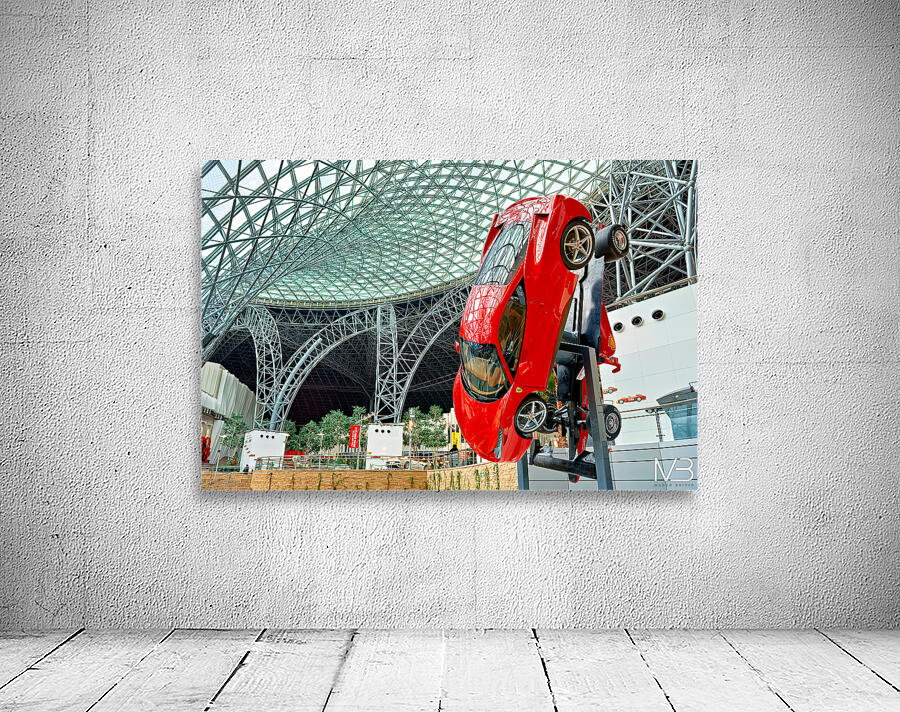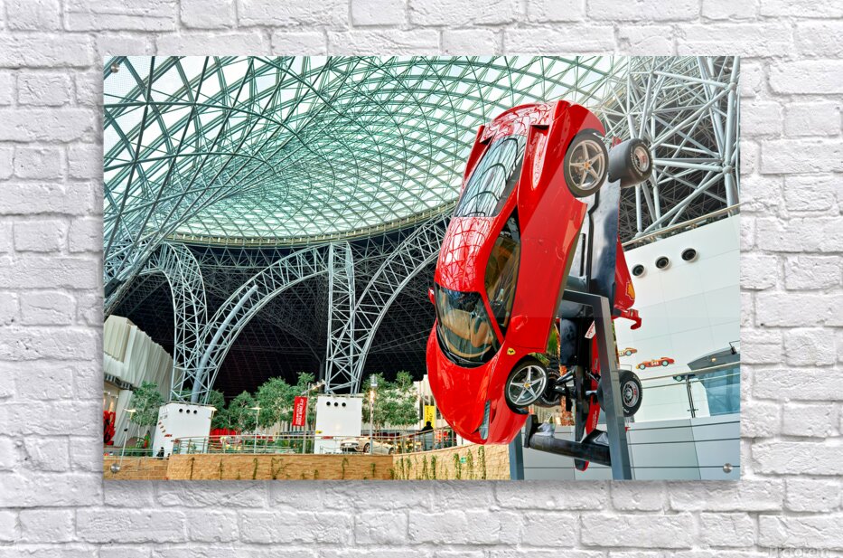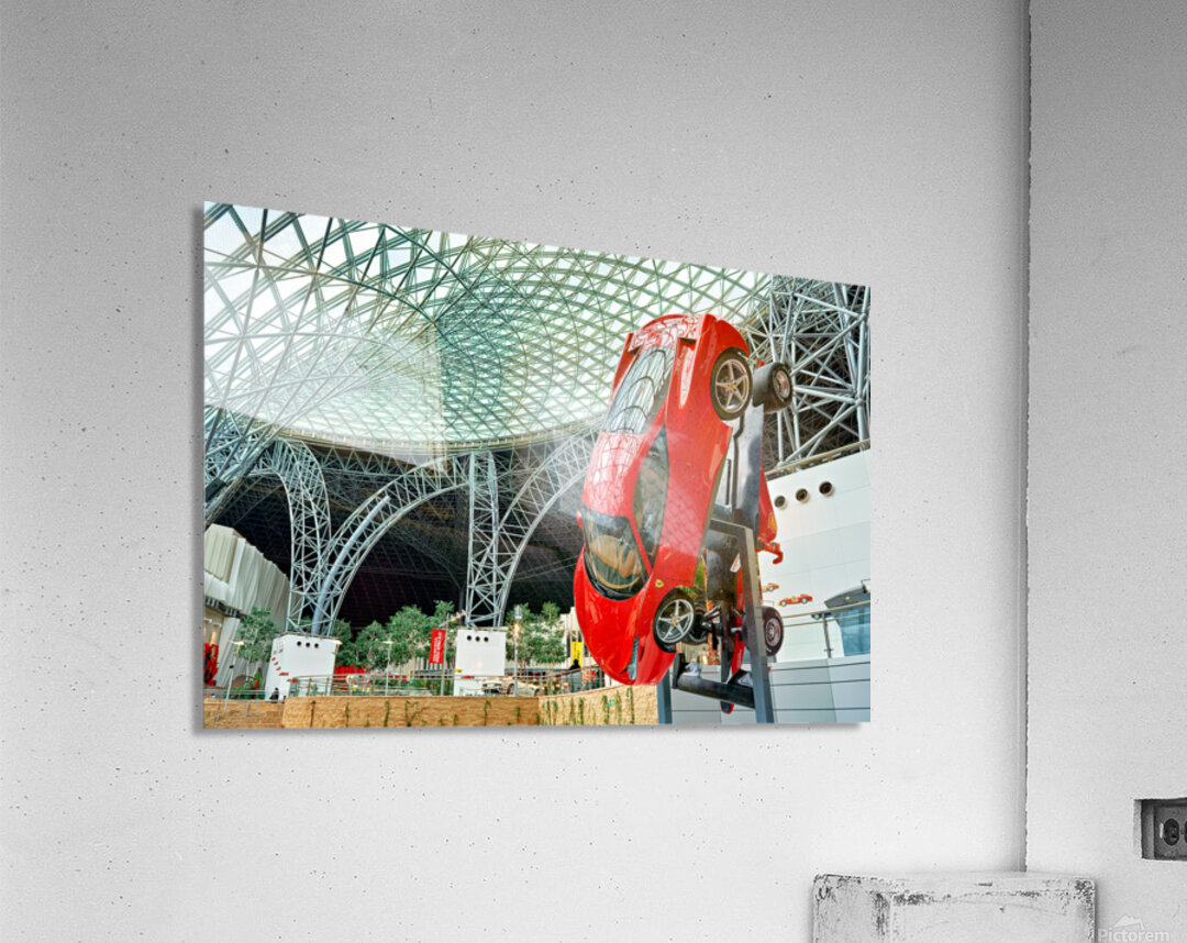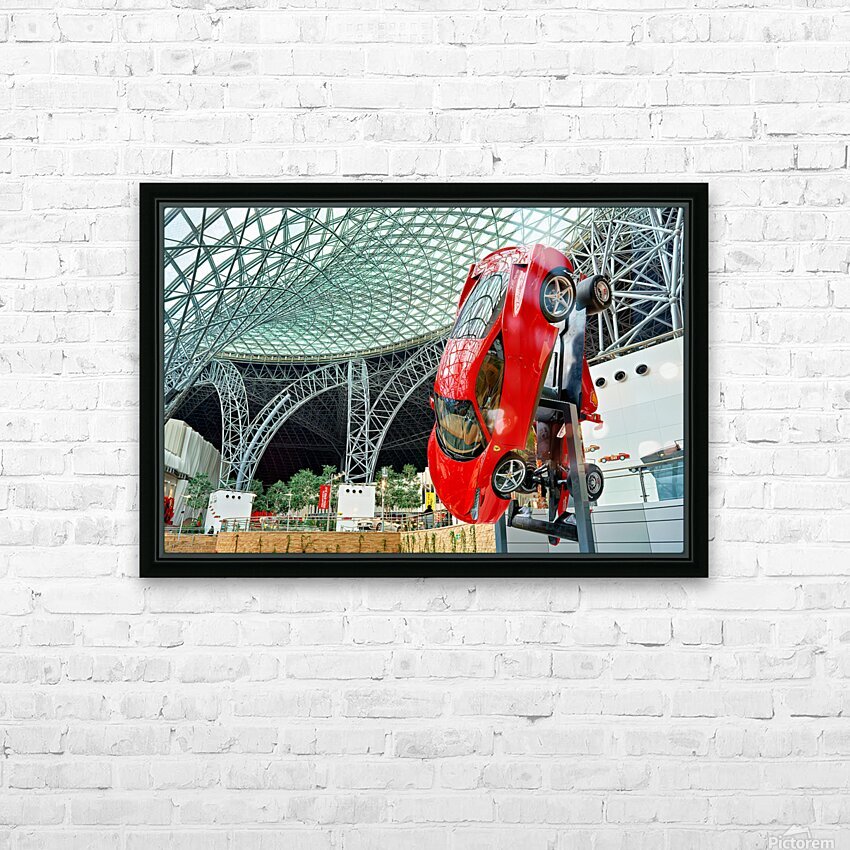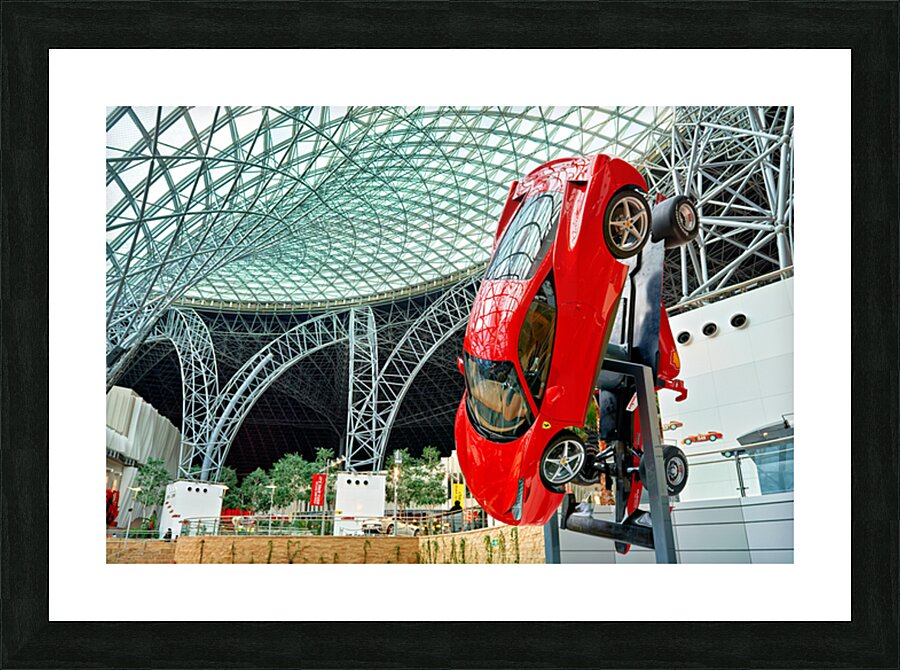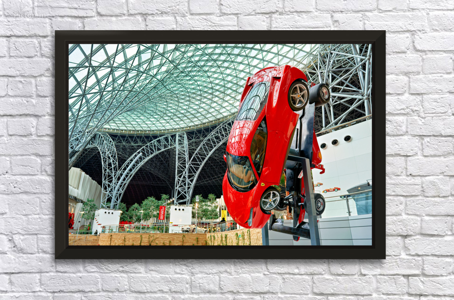 "Visit Ferrari World in Abu Dhabi for thrilling rides" in a framed print.