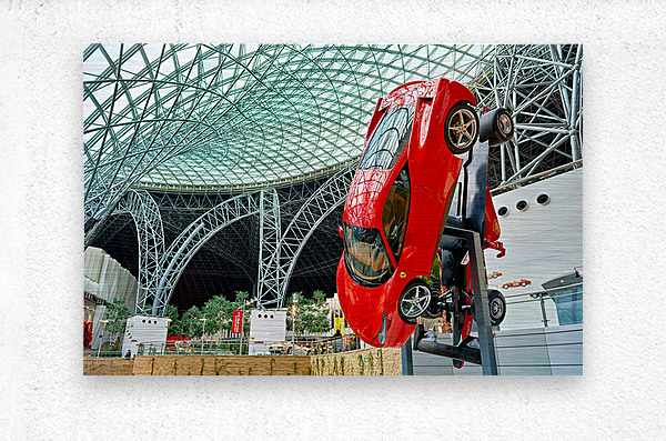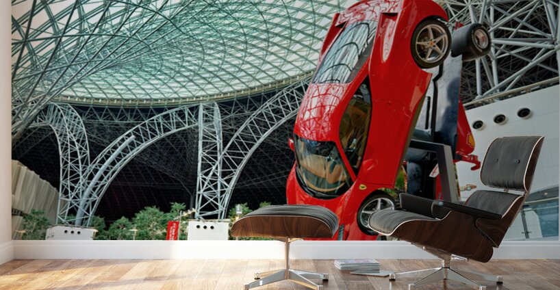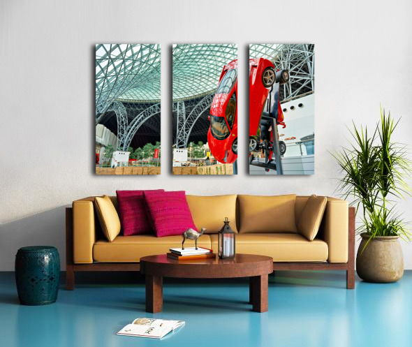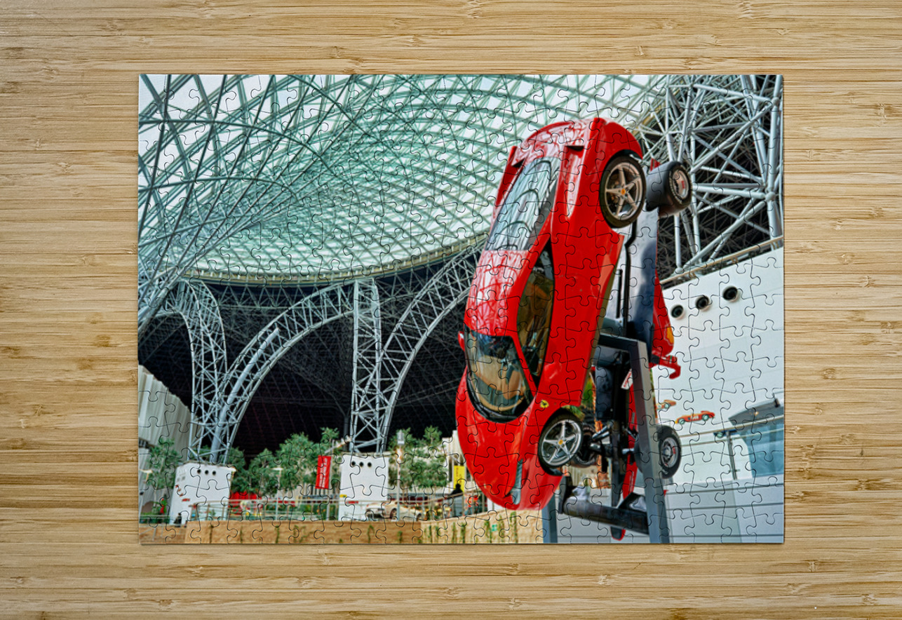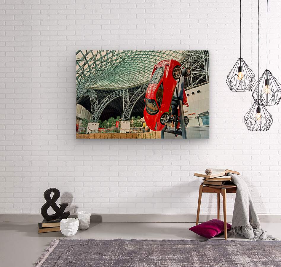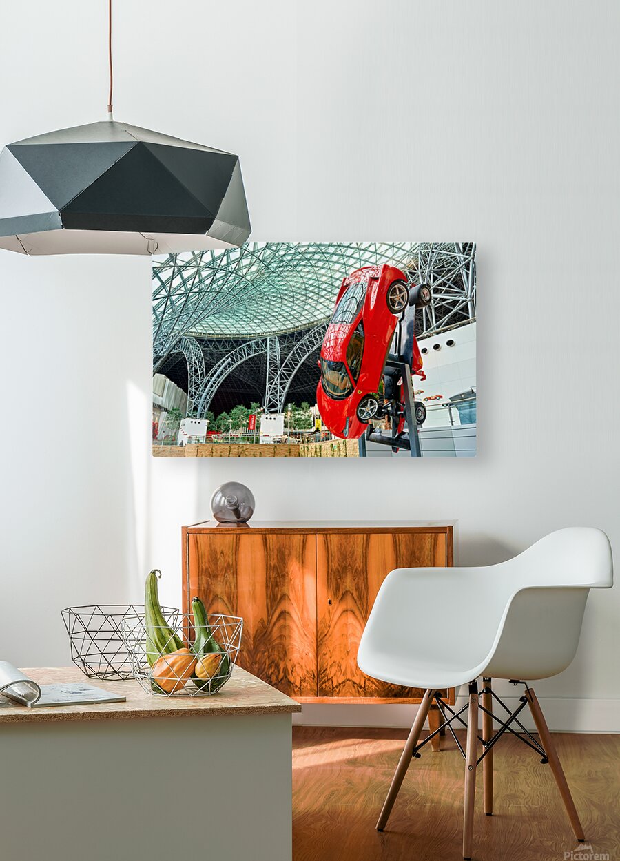"Visit Ferrari World in Abu Dhabi for thrilling rides" in a framed print.