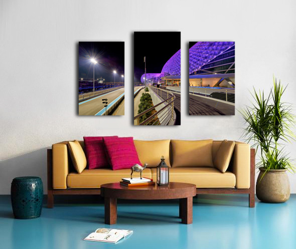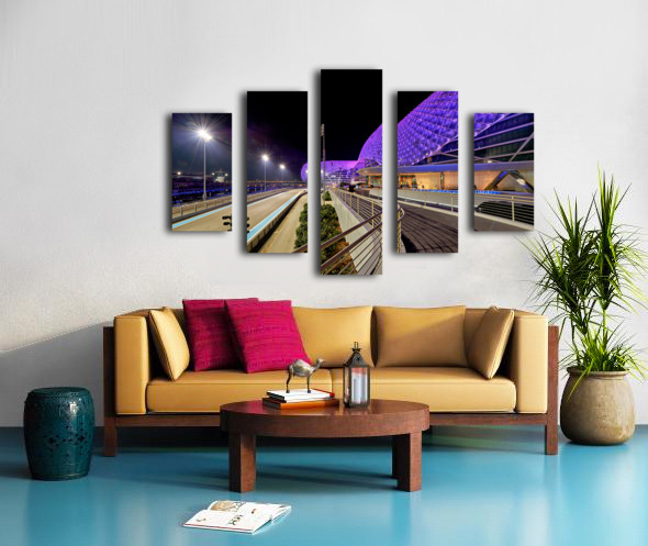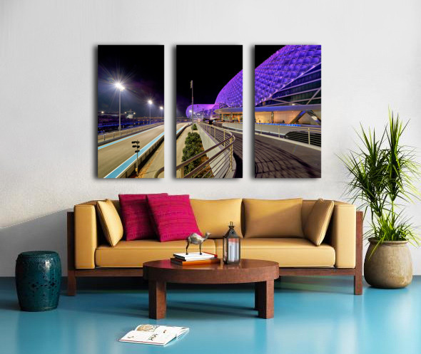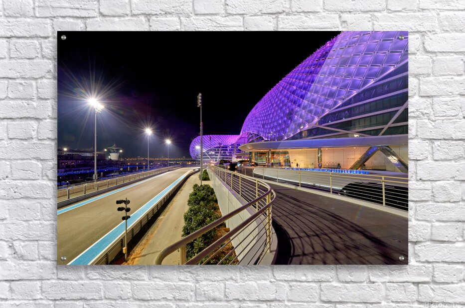 Get this artwork "Yas Island hotel view at night in Abu Dhabi" in a framed print.