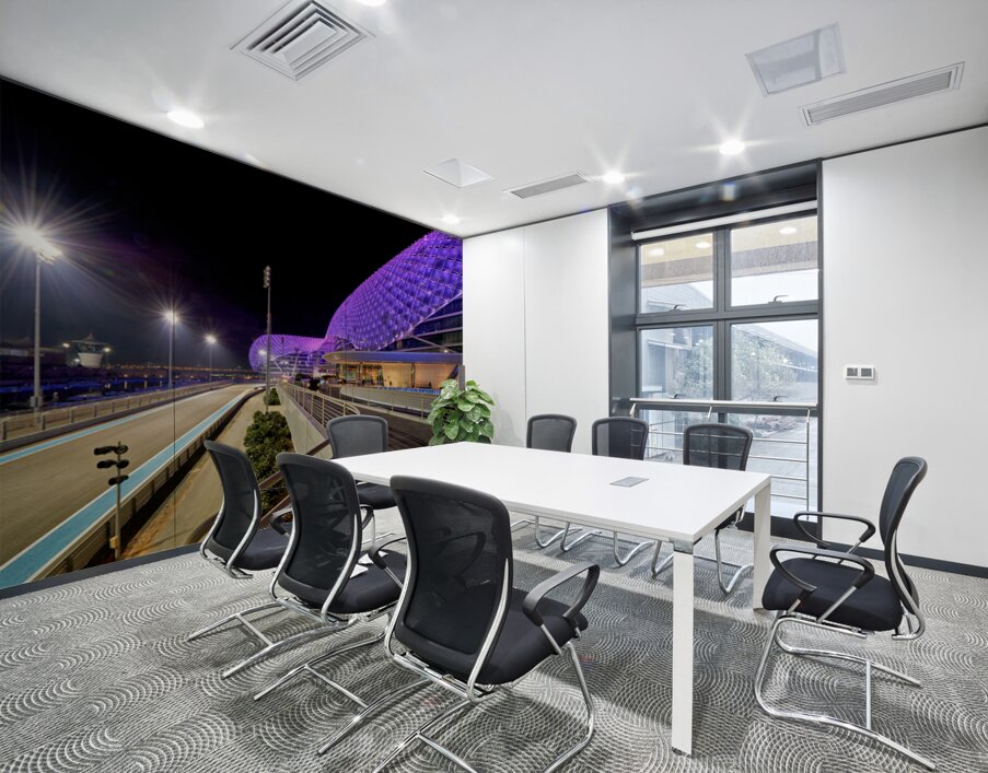 ABOUT THIS ARTWORK: YAS ISLAND HOTEL VIEW AT NIGHT IN ABU DHABI