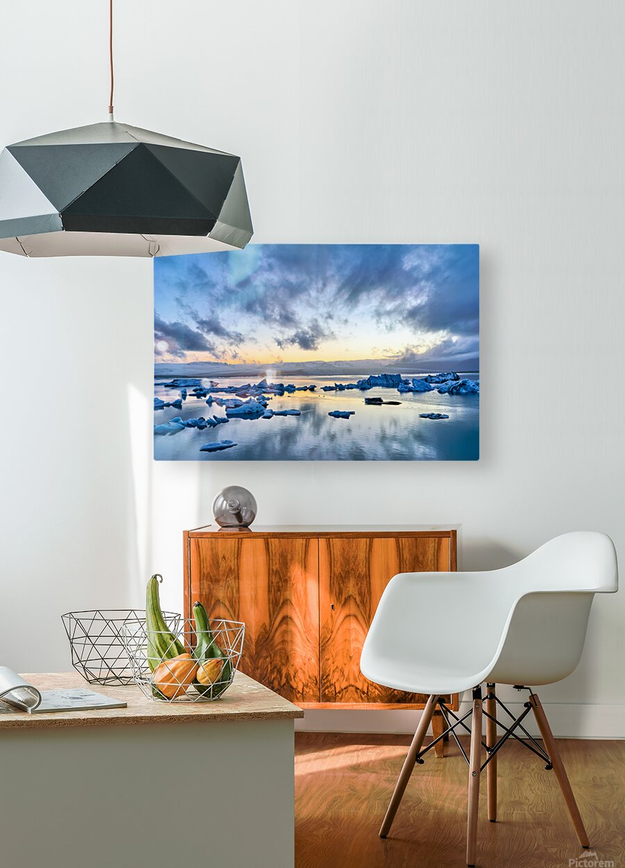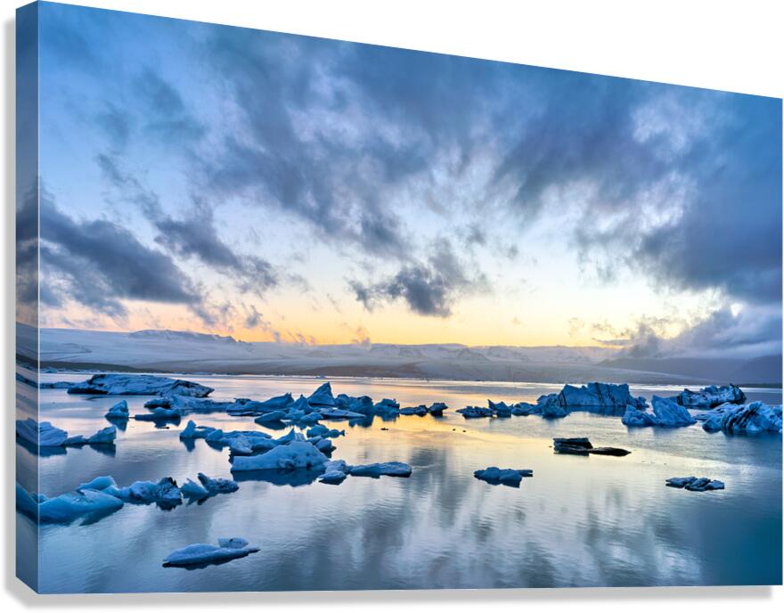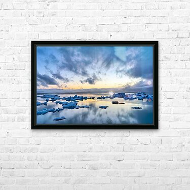 ABOUT THIS ARTWORK: MIDNIGHT SCENES AT JOKULSARLON GLACIER LAGOON IN ICELAND