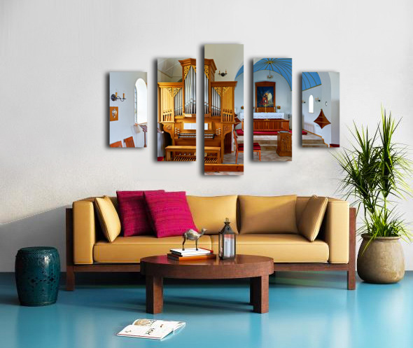Wooden church interior with organ in Vik i Myrdal Iceland Marco Brivio Puzzle printing