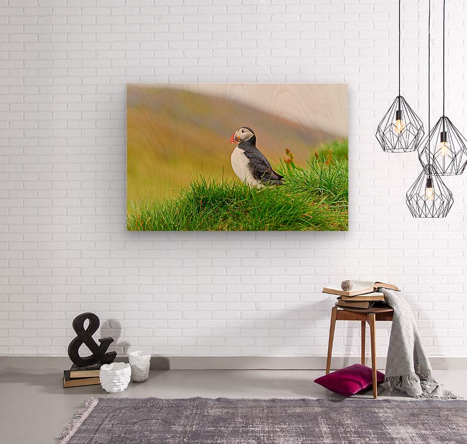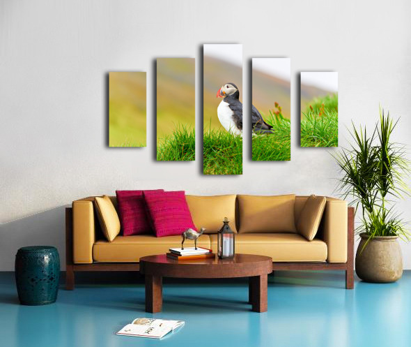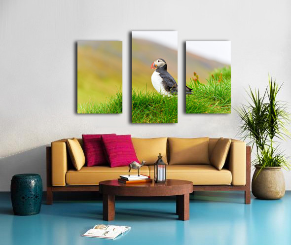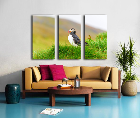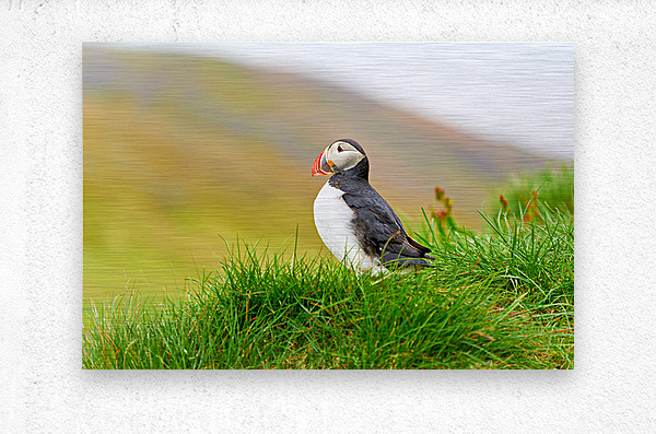 ABOUT THIS ARTWORK: PUFFIN STANDING ON GRASS IN BORGARFJORDUR EYSTRI ICELAND