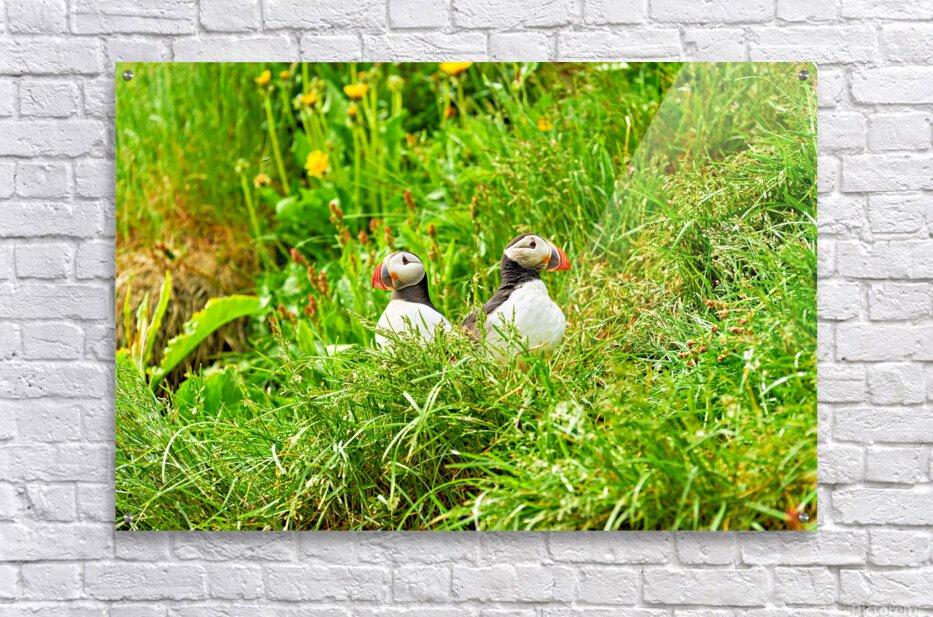 ABOUT THIS ARTWORK: TWO PUFFINS RESTING IN BORGARFJORDUR EYSTRI ICELAND