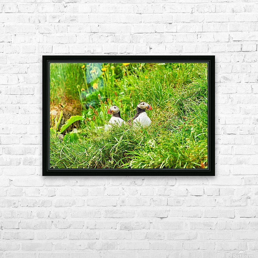 Two puffins resting in Borgarfjordur Eystri Iceland Frame print