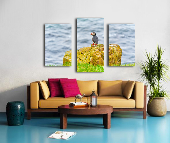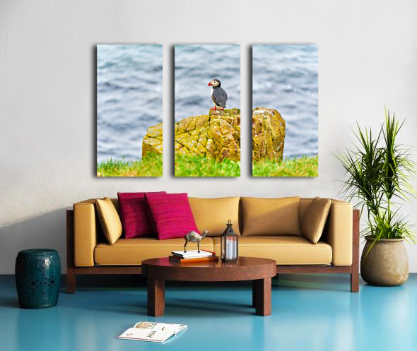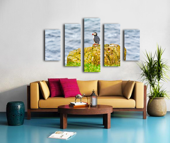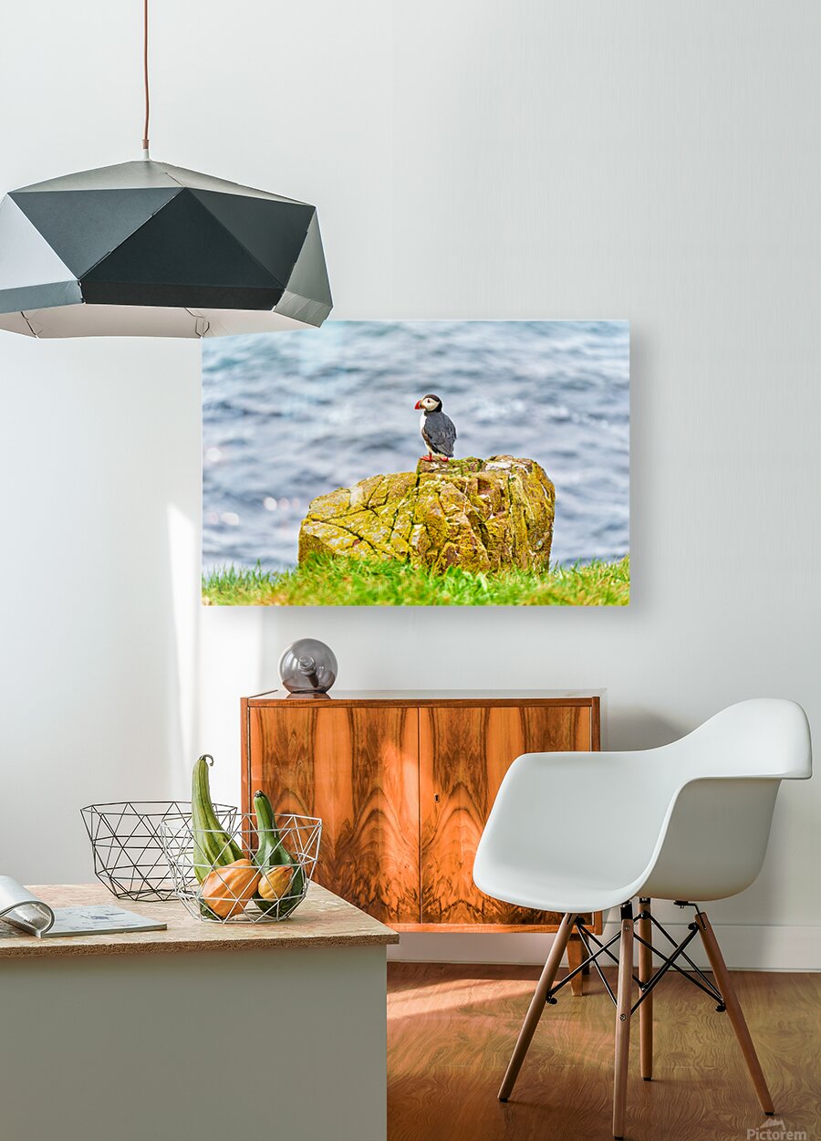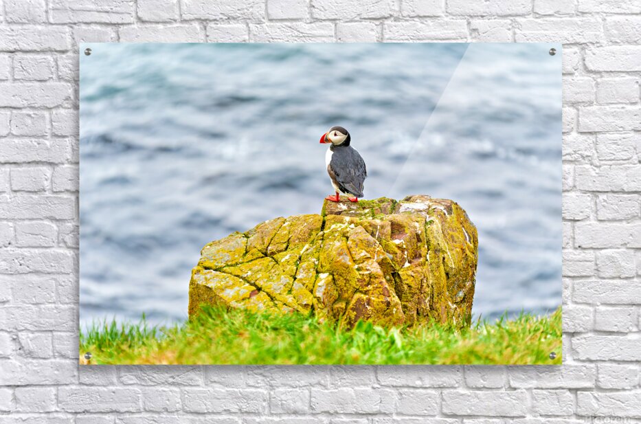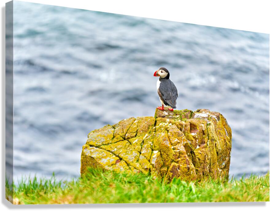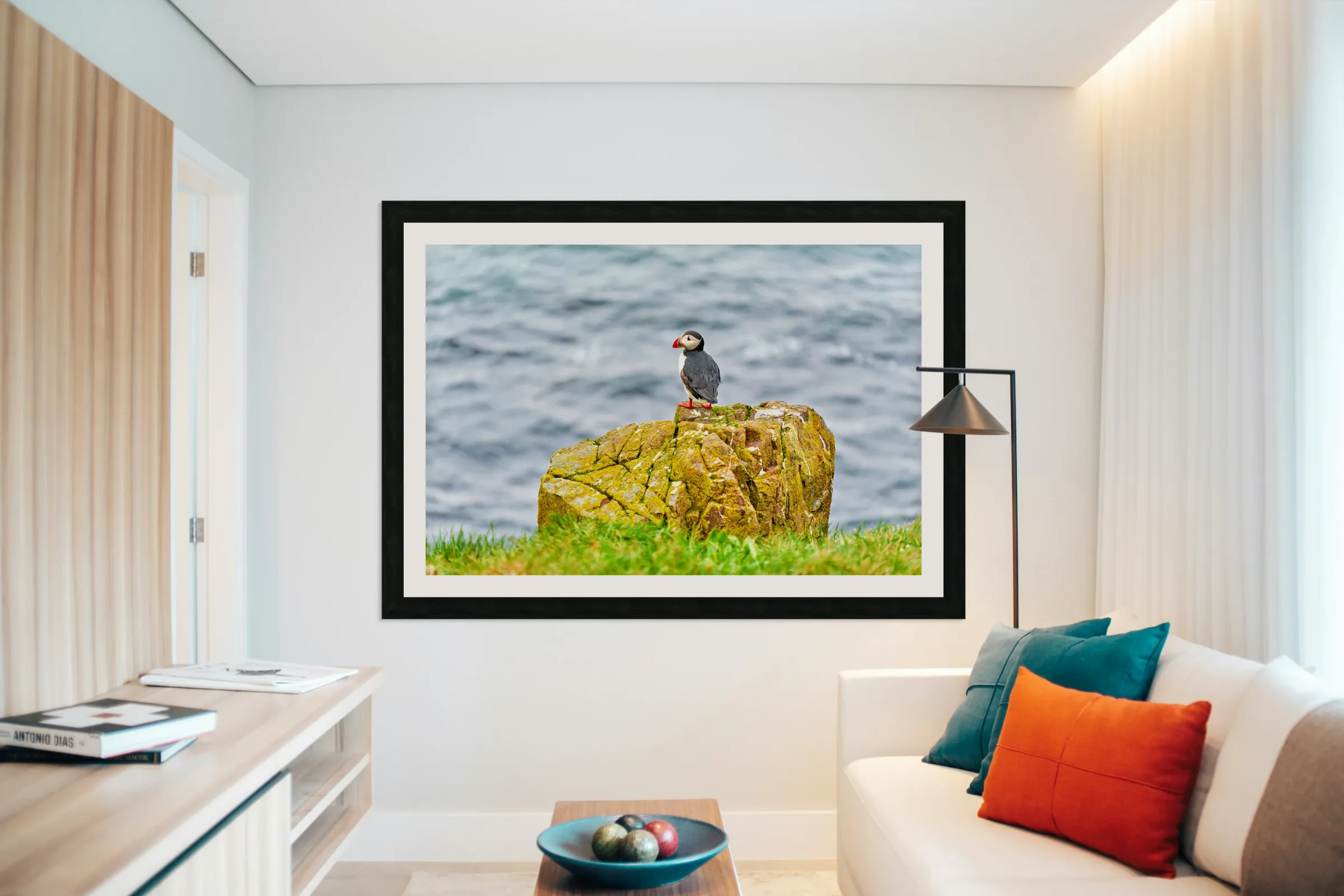 Get this artwork "Puffin on rock at Borgarfjordur Eystri in Iceland by the ocean" in a framed print.