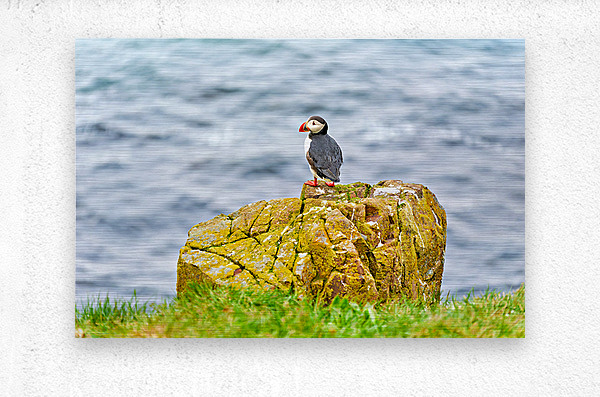 ABOUT THIS ARTWORK: PUFFIN ON ROCK AT BORGARFJORDUR EYSTRI IN ICELAND BY THE OCEAN