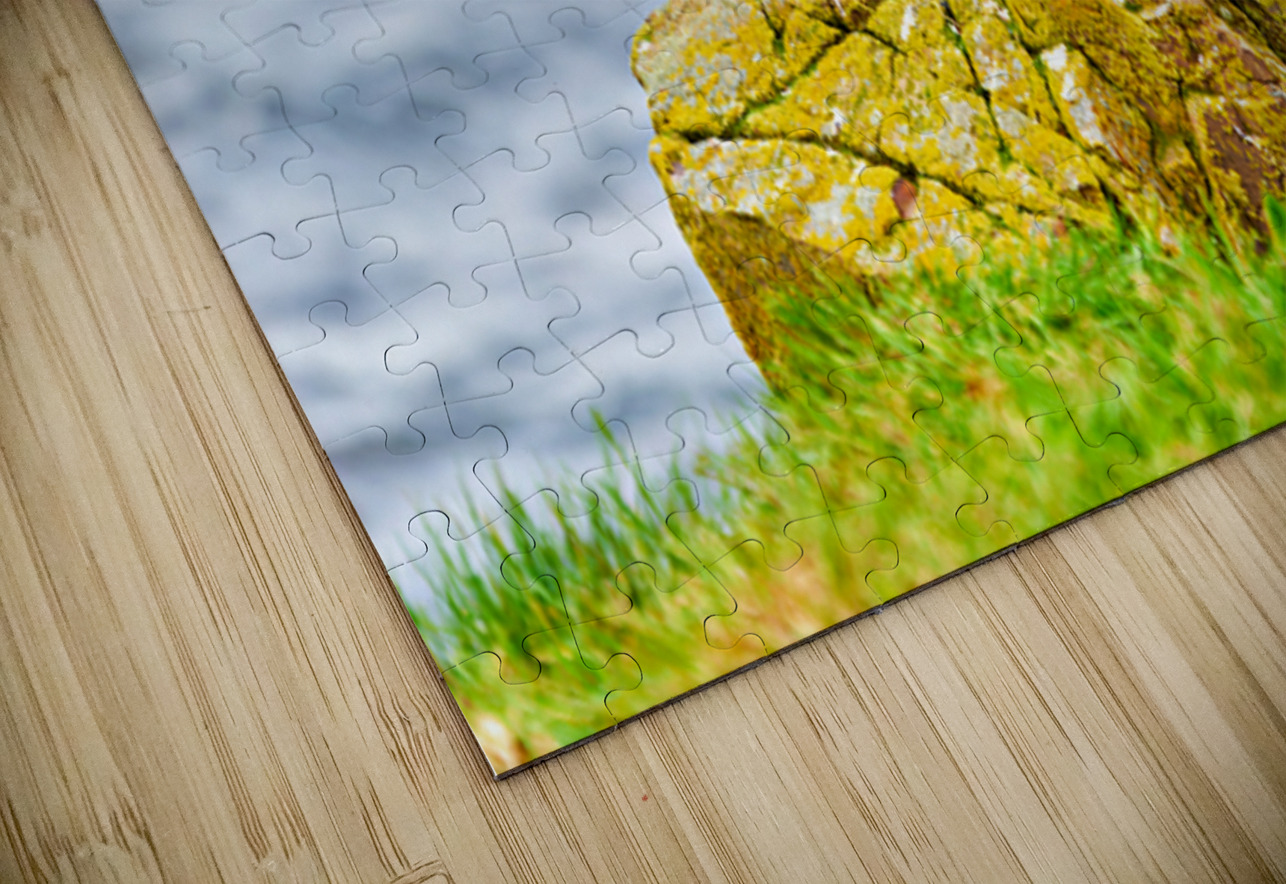 Puffin on rock at Borgarfjordur Eystri in Iceland by the ocean Marco Brivio Puzzle