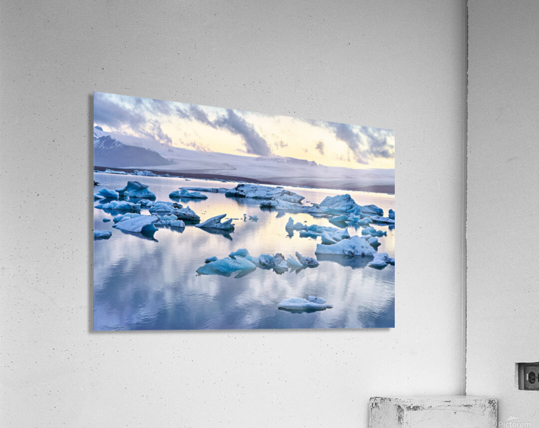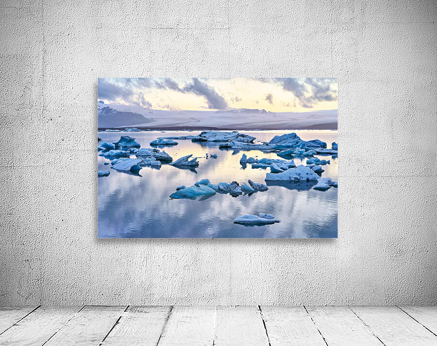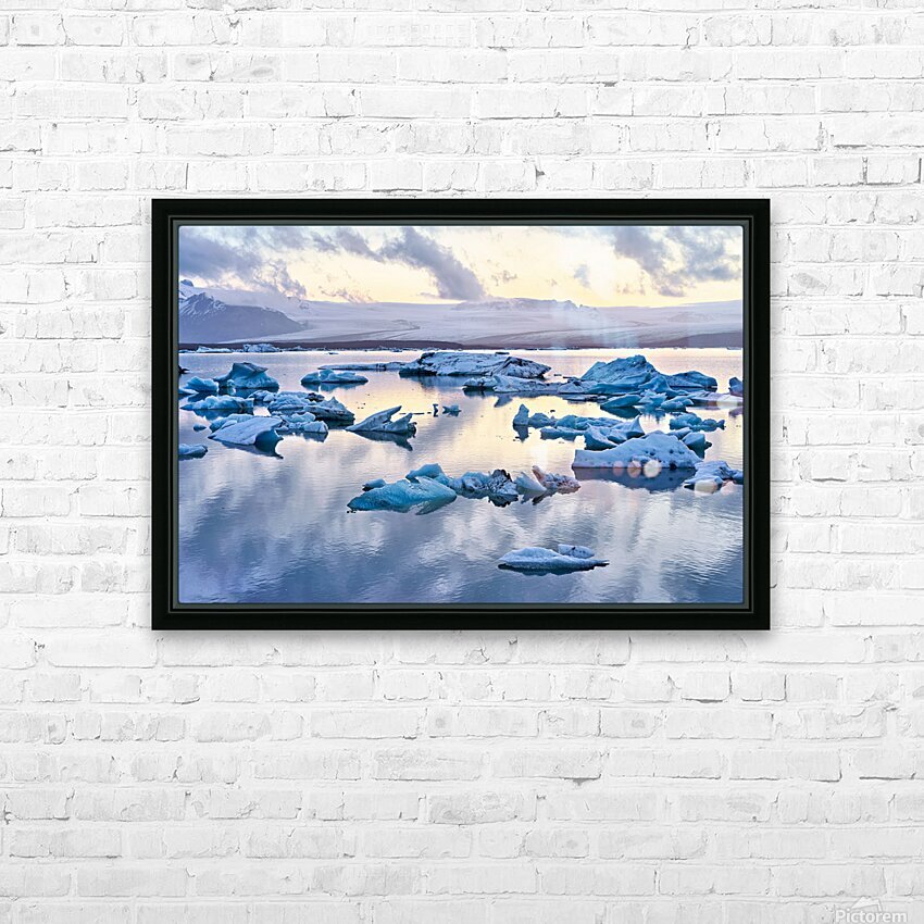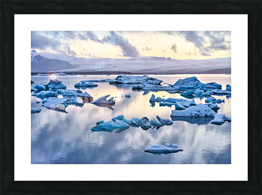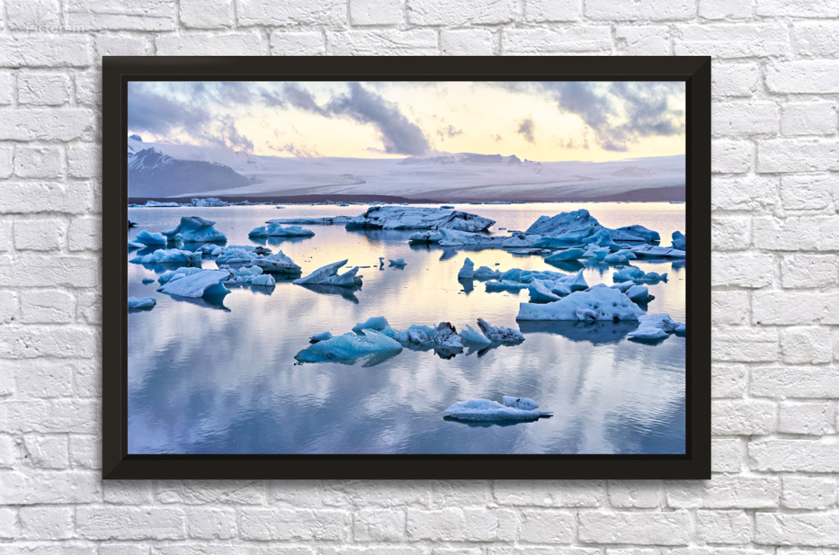 "Midnight at jokulsarlon glacier lagoon in iceland" in a framed print.