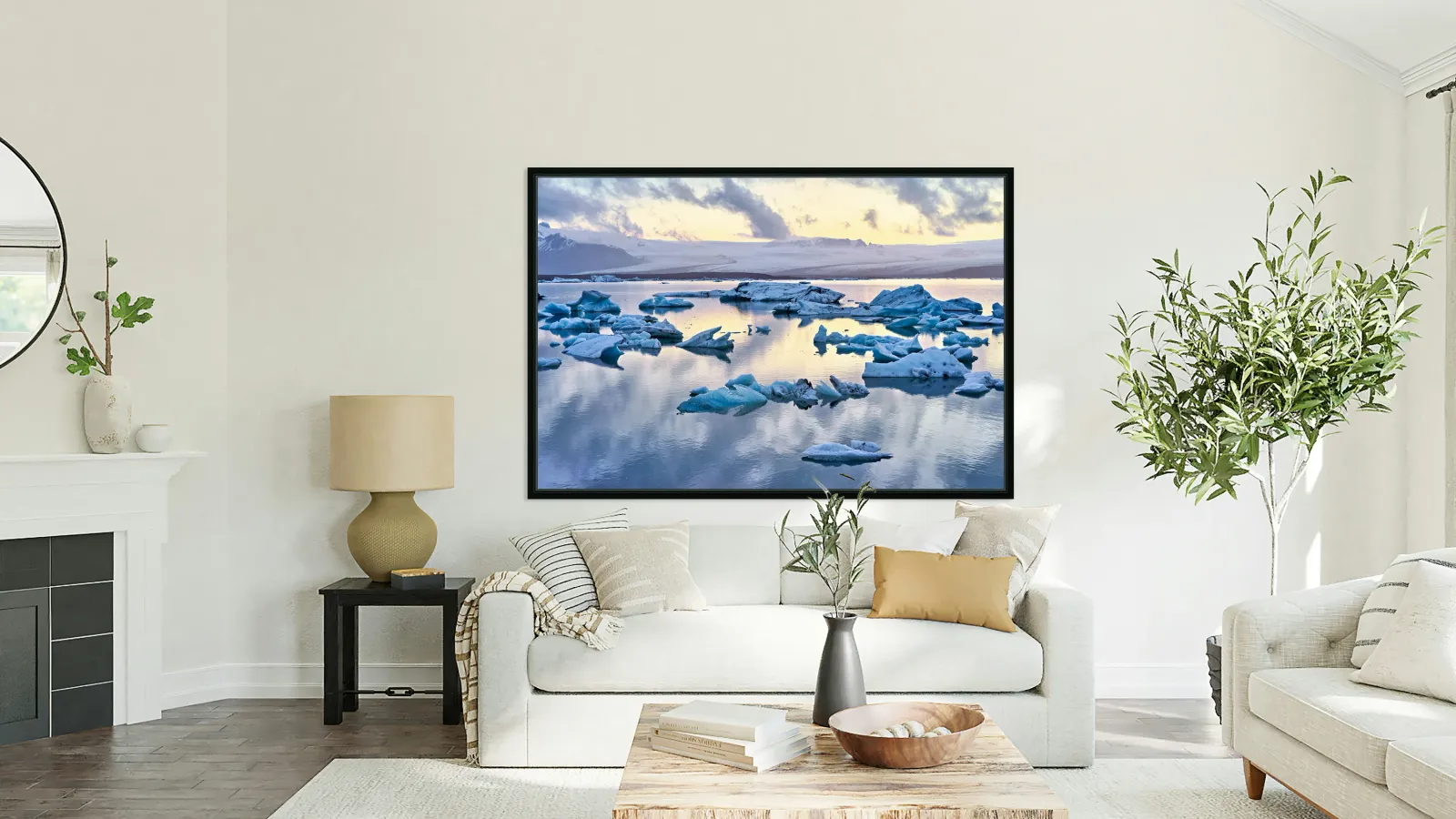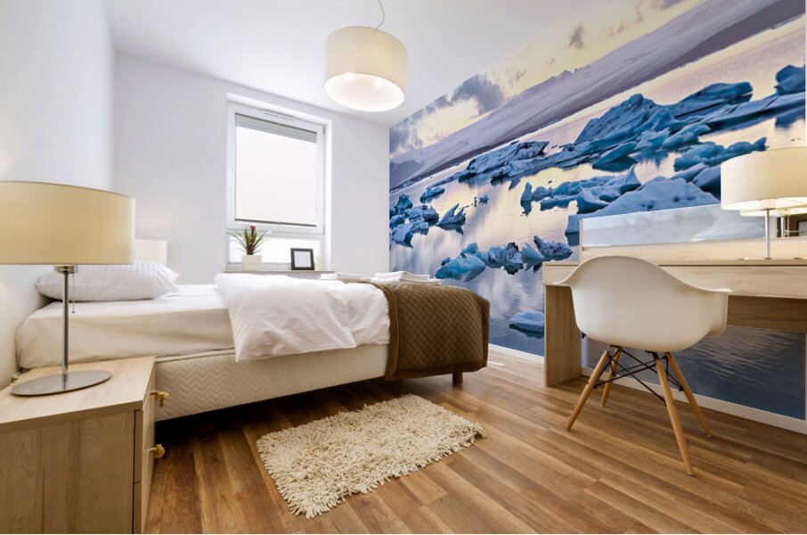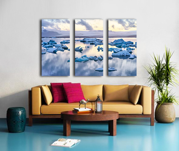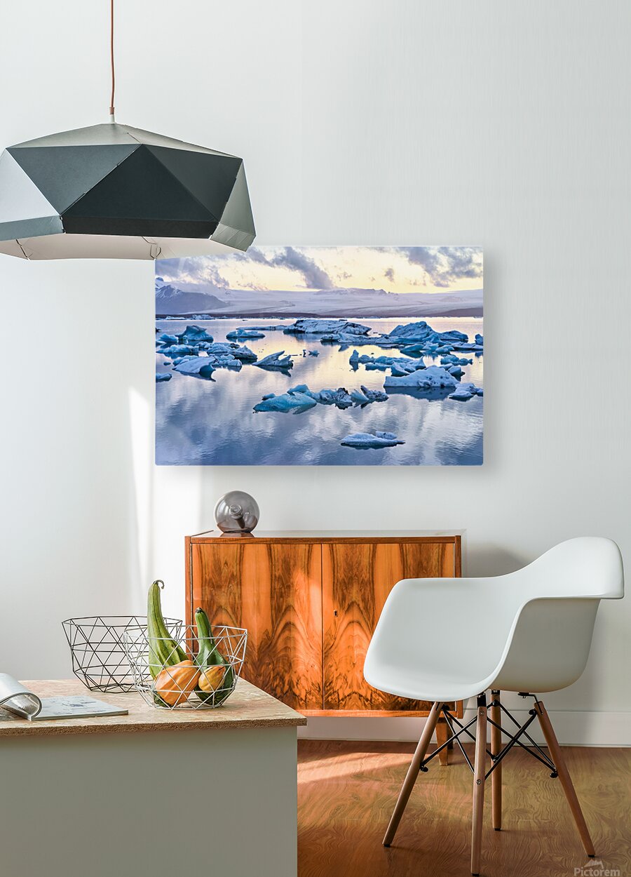 "Midnight at jokulsarlon glacier lagoon in iceland" in a framed print.