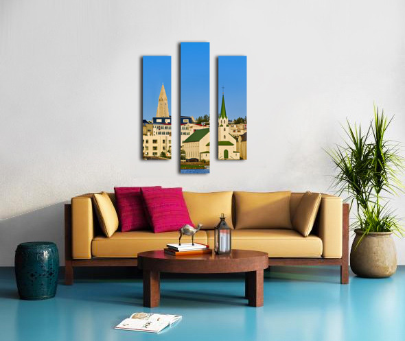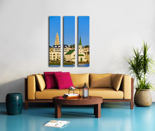Lutheran free church by lake Tjornin and Halgrimskirkja Frame print