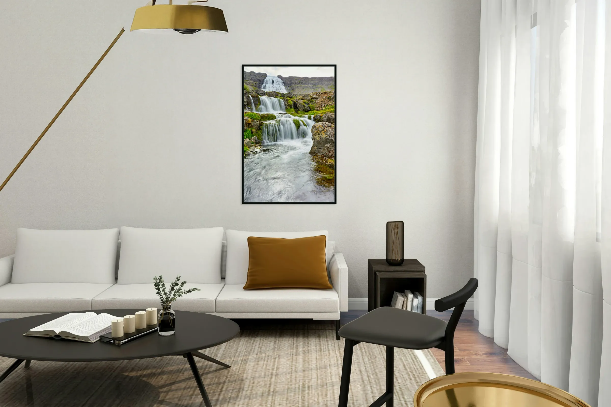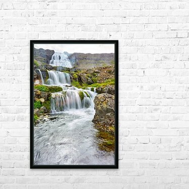 Get this artwork "Gongumannafoss waterfall in Iceland with flowing water" in a framed print.