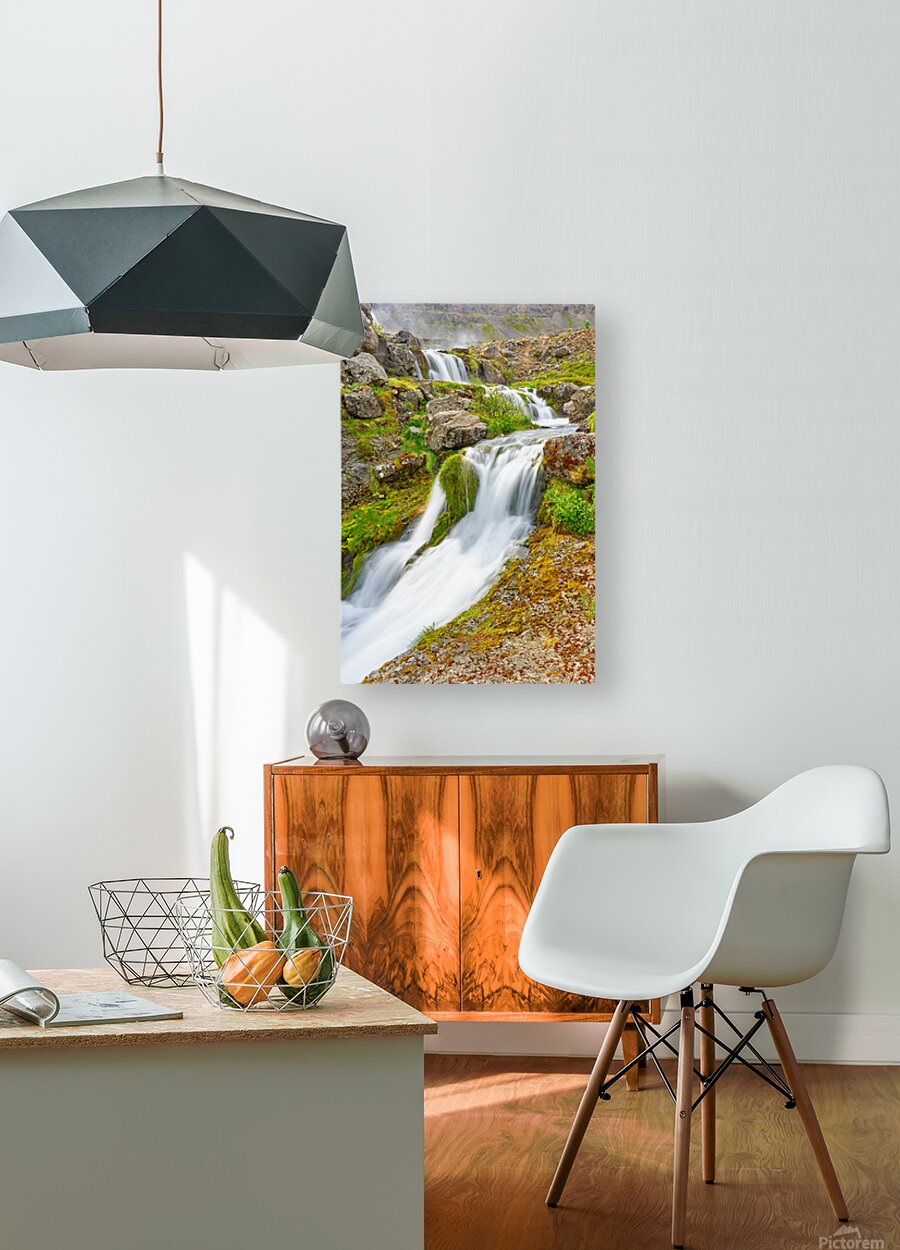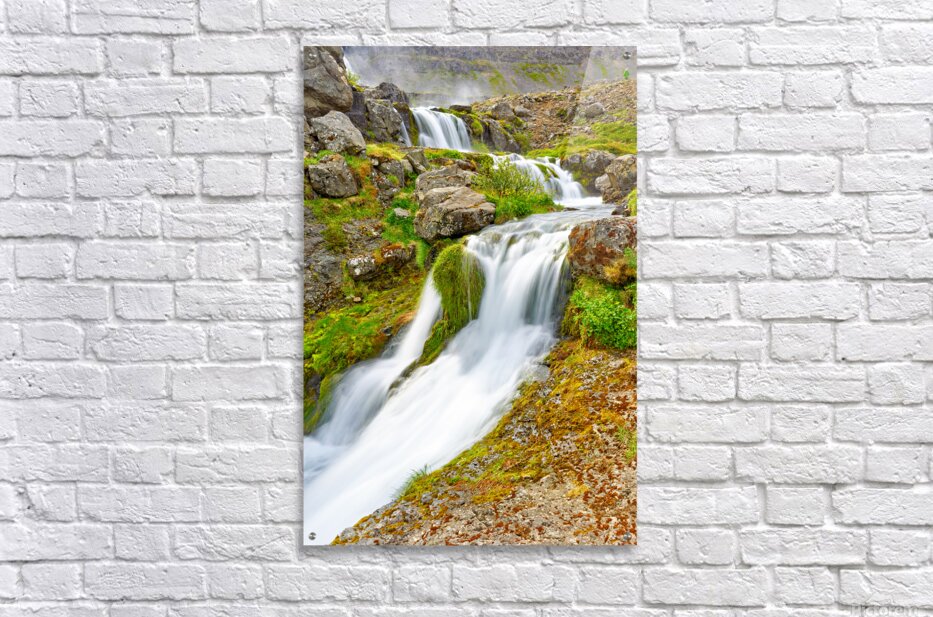 ABOUT THIS ARTWORK: GONGUMANNAFOSS WATERFALL FLOWS IN ICELAND DURING DAYLIGHT HOURS