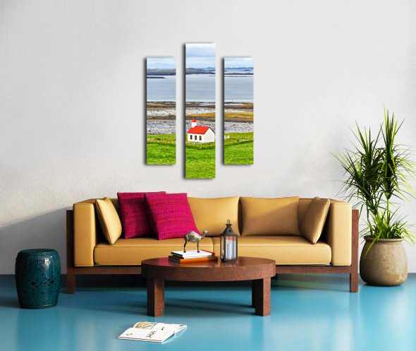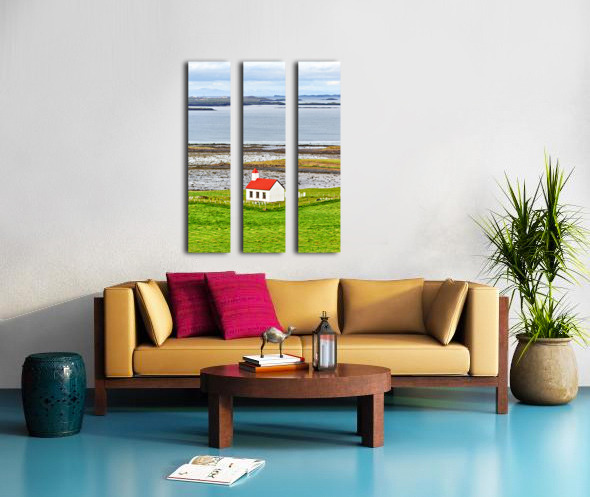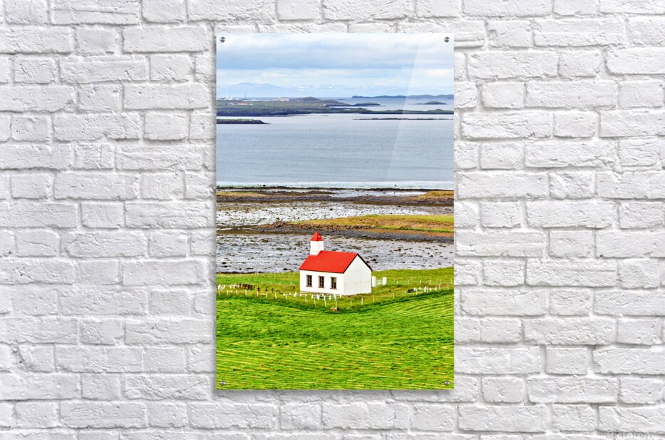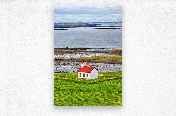 ABOUT THIS ARTWORK: CHURCH LOCATED IN THE WESTERN FJORDS OF ICELAND NEAR THE SEA