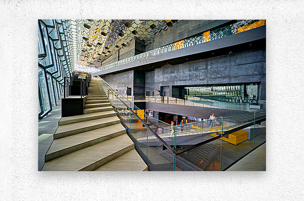 ABOUT THIS ARTWORK: EXPLORING THE INTERIOR OF HARPA OPERA HOUSE IN REYKJAVIK ICELAND