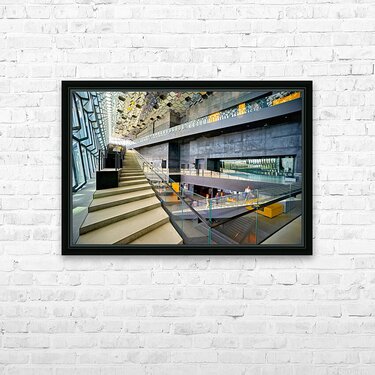 Exploring the interior of Harpa Opera House in Reykjavik Iceland Picture Frame Printing