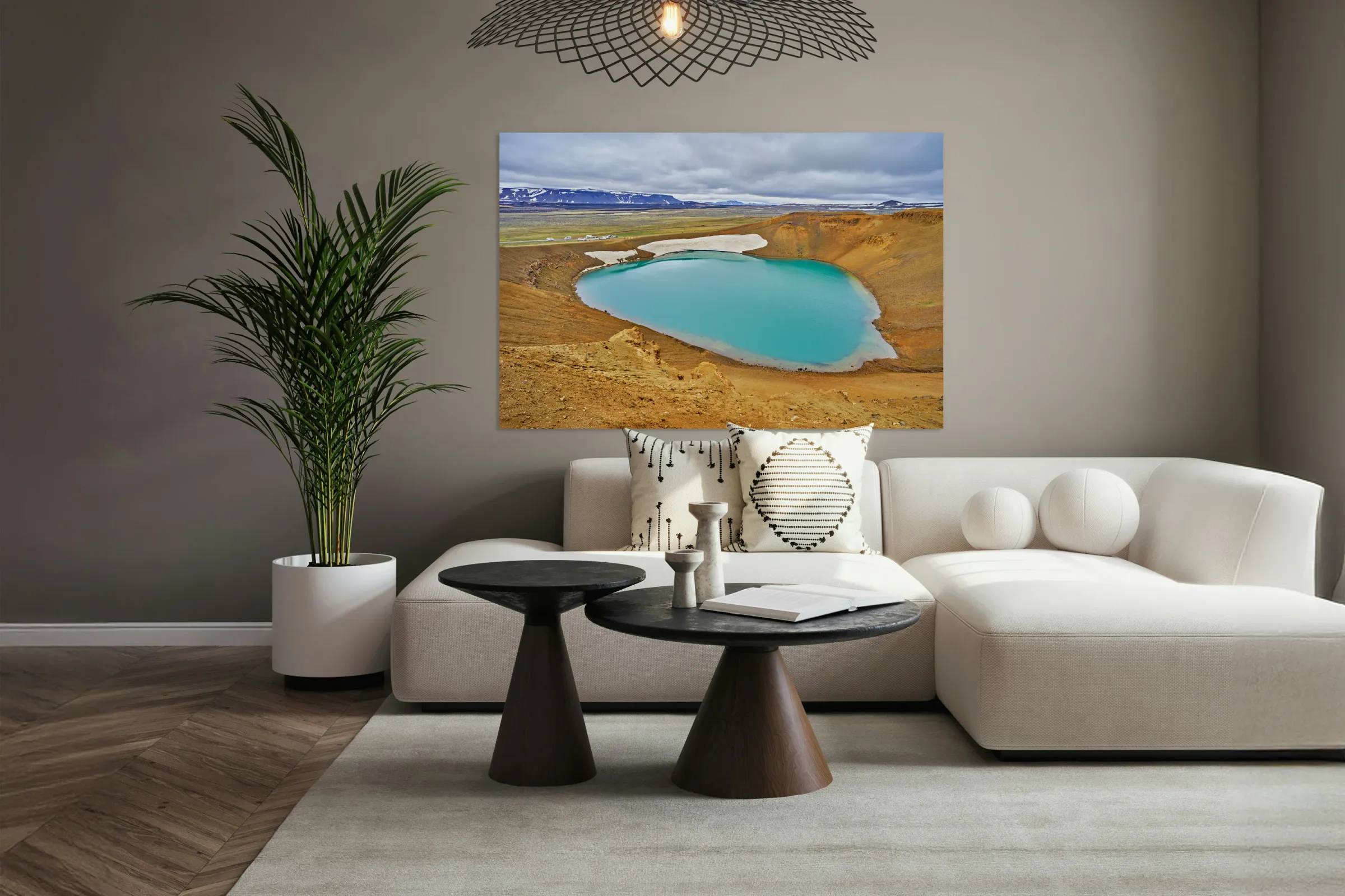 ABOUT THIS ARTWORK: KRAFLA VOLCANIC AREA WITH GEOTHERMAL LAKE IN ICELAND