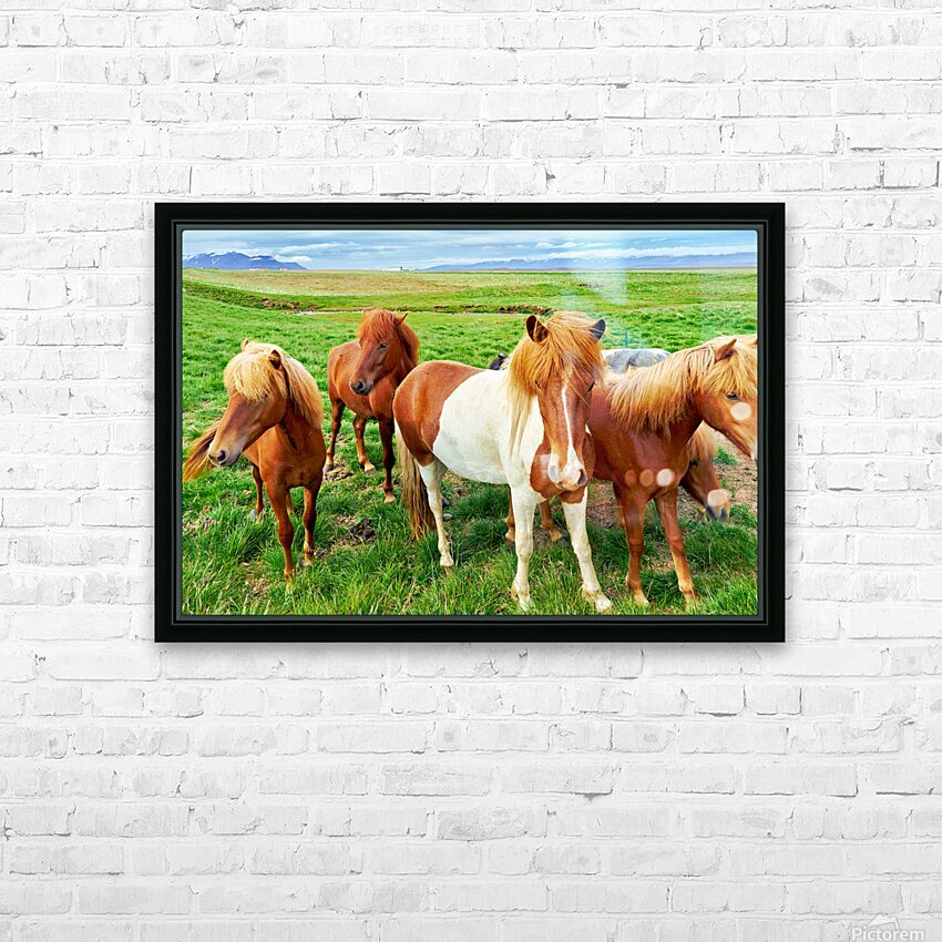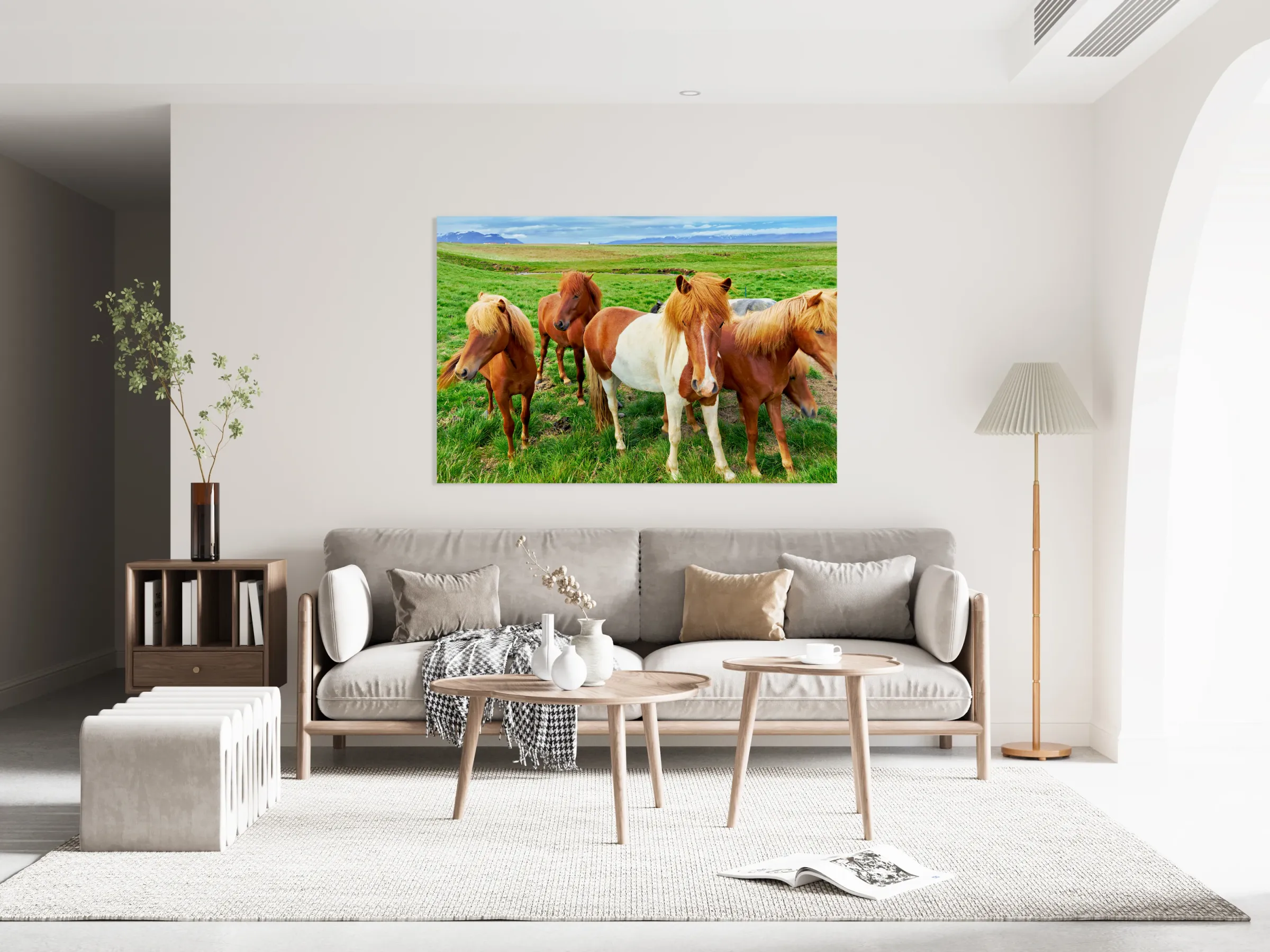 Wild horses gather in western fjords in Iceland during summer Picture Frame Printing