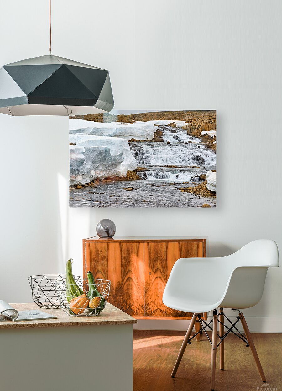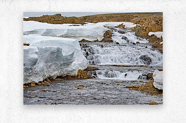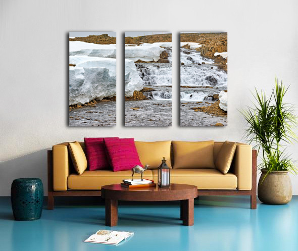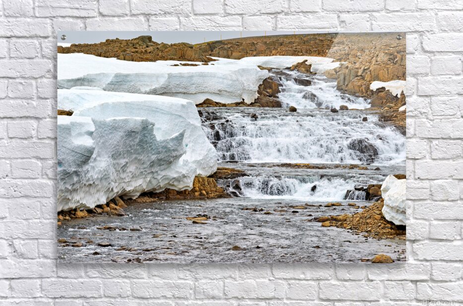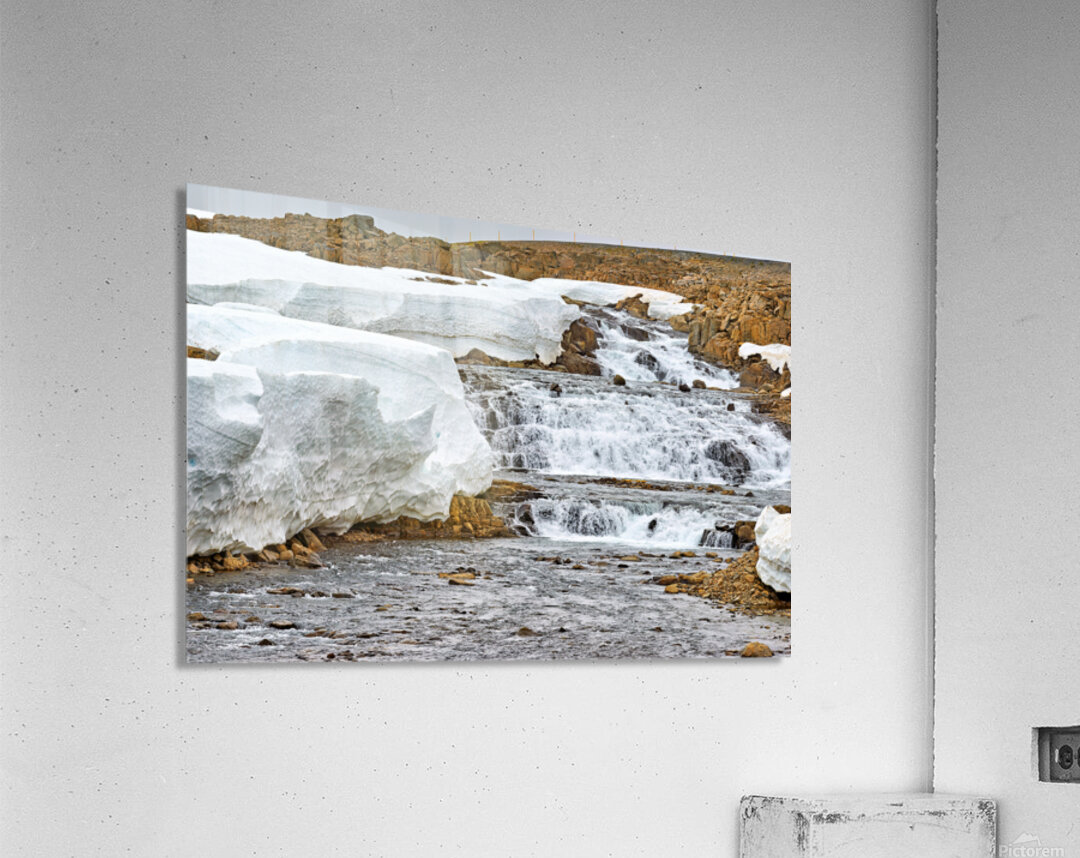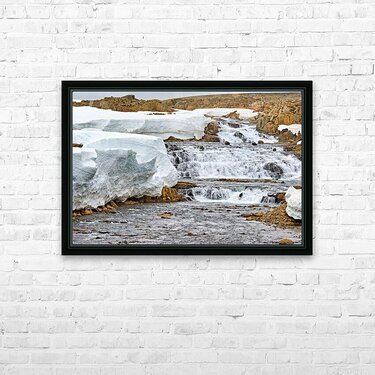 Get this artwork "Flowing water and snow near Djupvegur in Iceland" in a framed print.