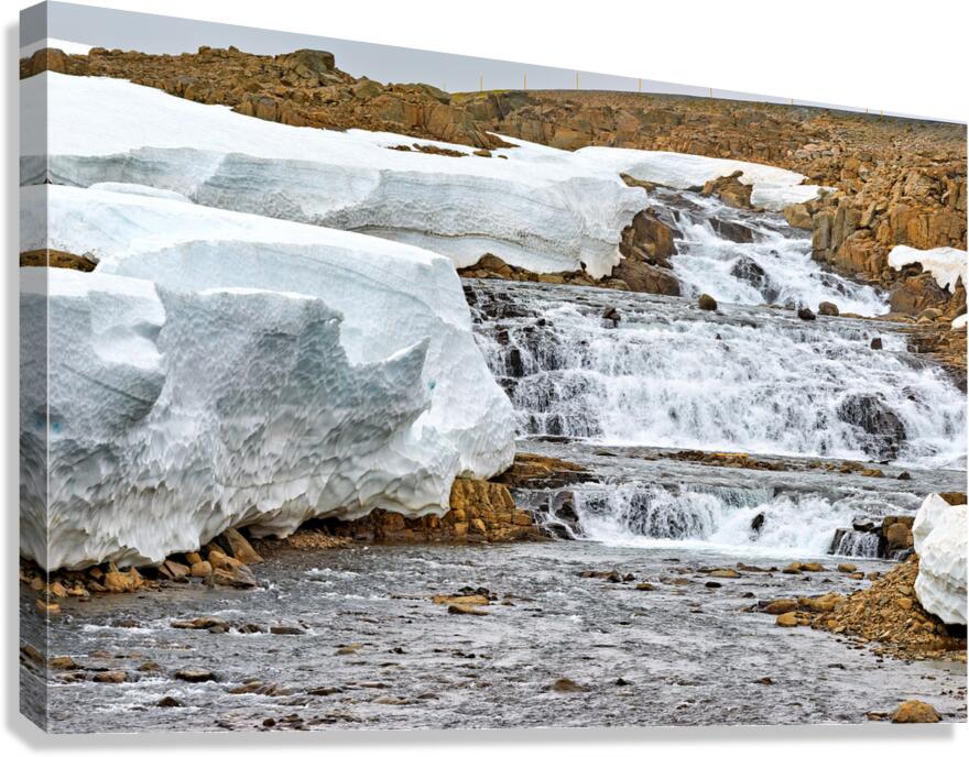 ABOUT THIS ARTWORK: FLOWING WATER AND SNOW NEAR DJUPVEGUR IN ICELAND