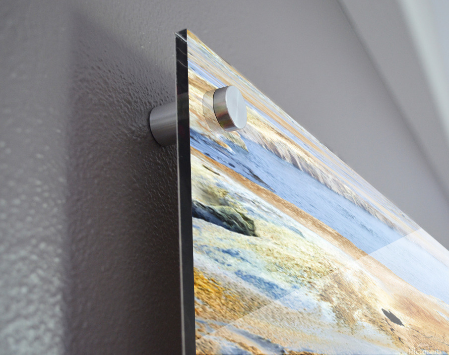 Printed to the edge - Ready to hang - provided with 4 premium polished aluminum stand off ( wall screws and mounting hardware provided )