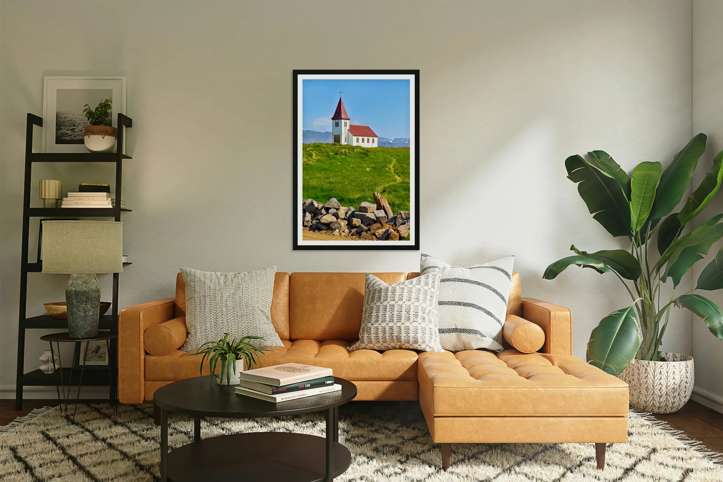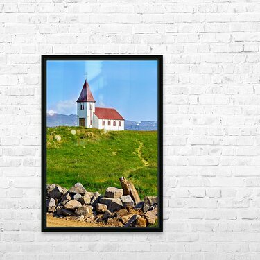 Visit to Hellnar Church in Iceland on a sunny day Frame print