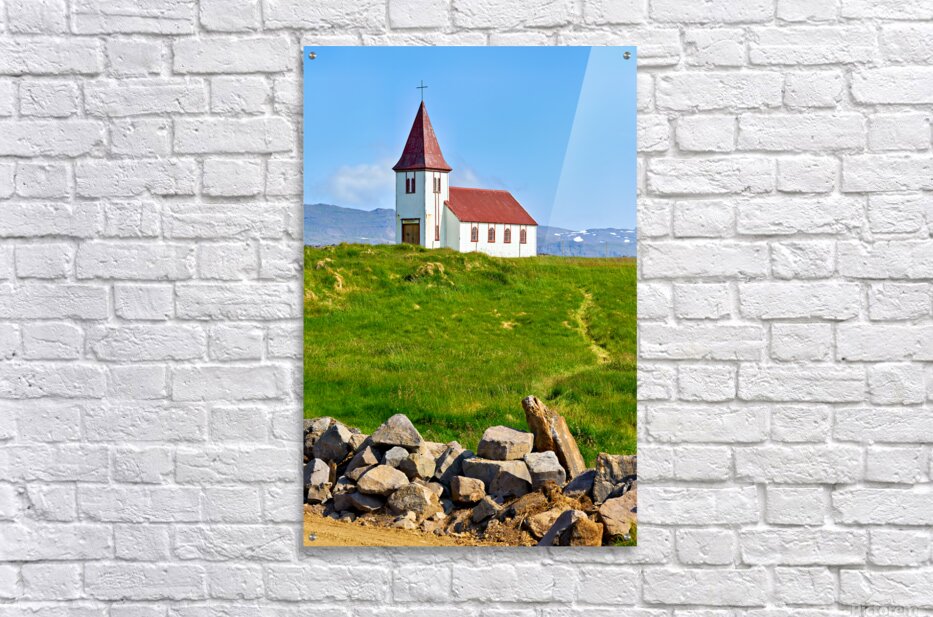 Get this artwork "Visit to Hellnar Church in Iceland on a sunny day" in a framed print.