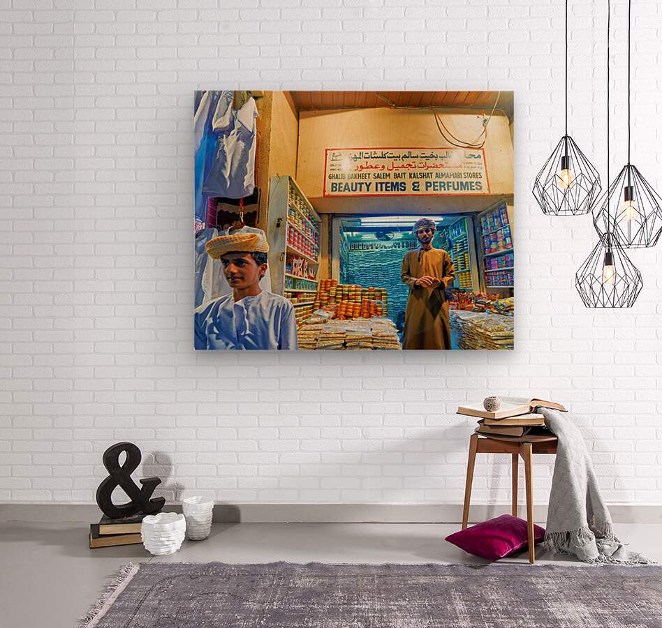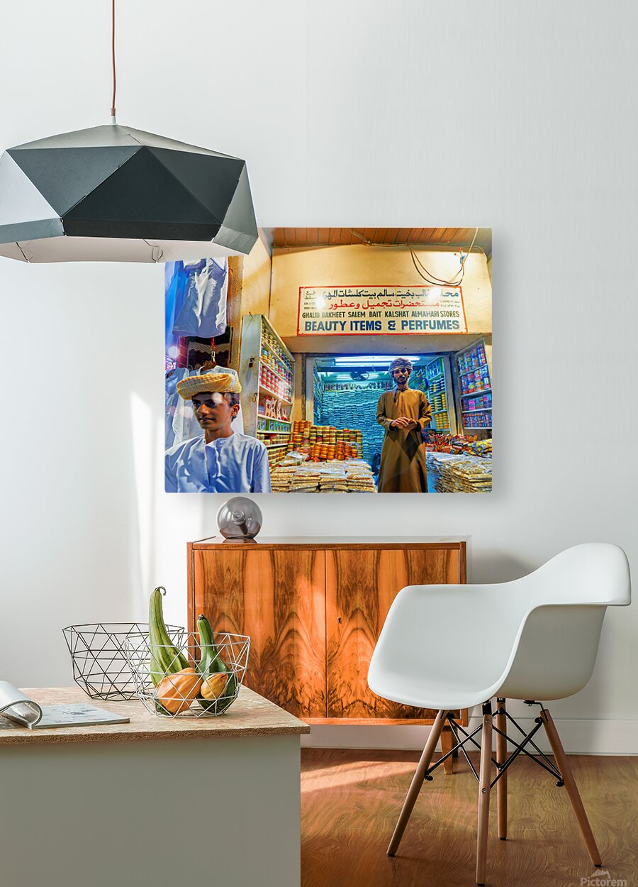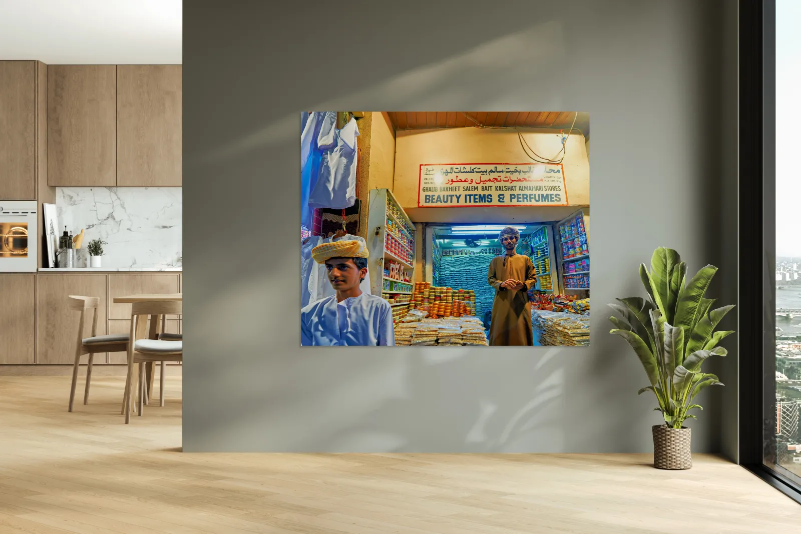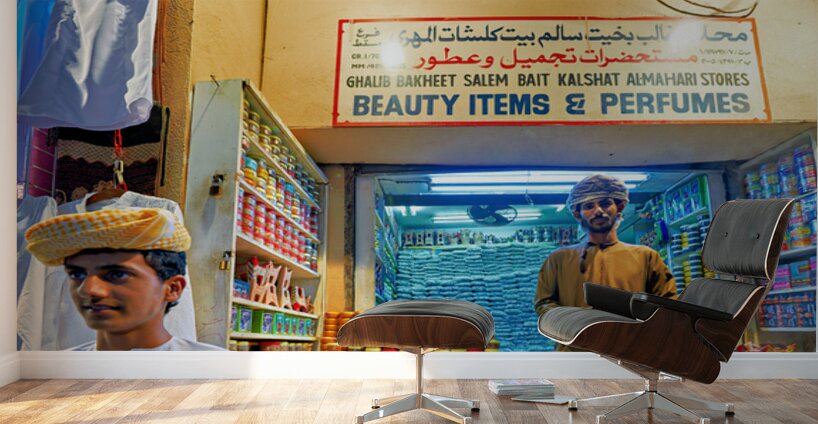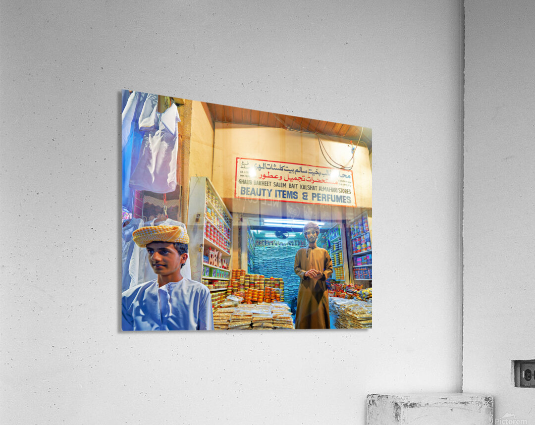 People shop for beauty items and perfumes at a store in Mutrah Souq in Muscat Oman during the evening hours.